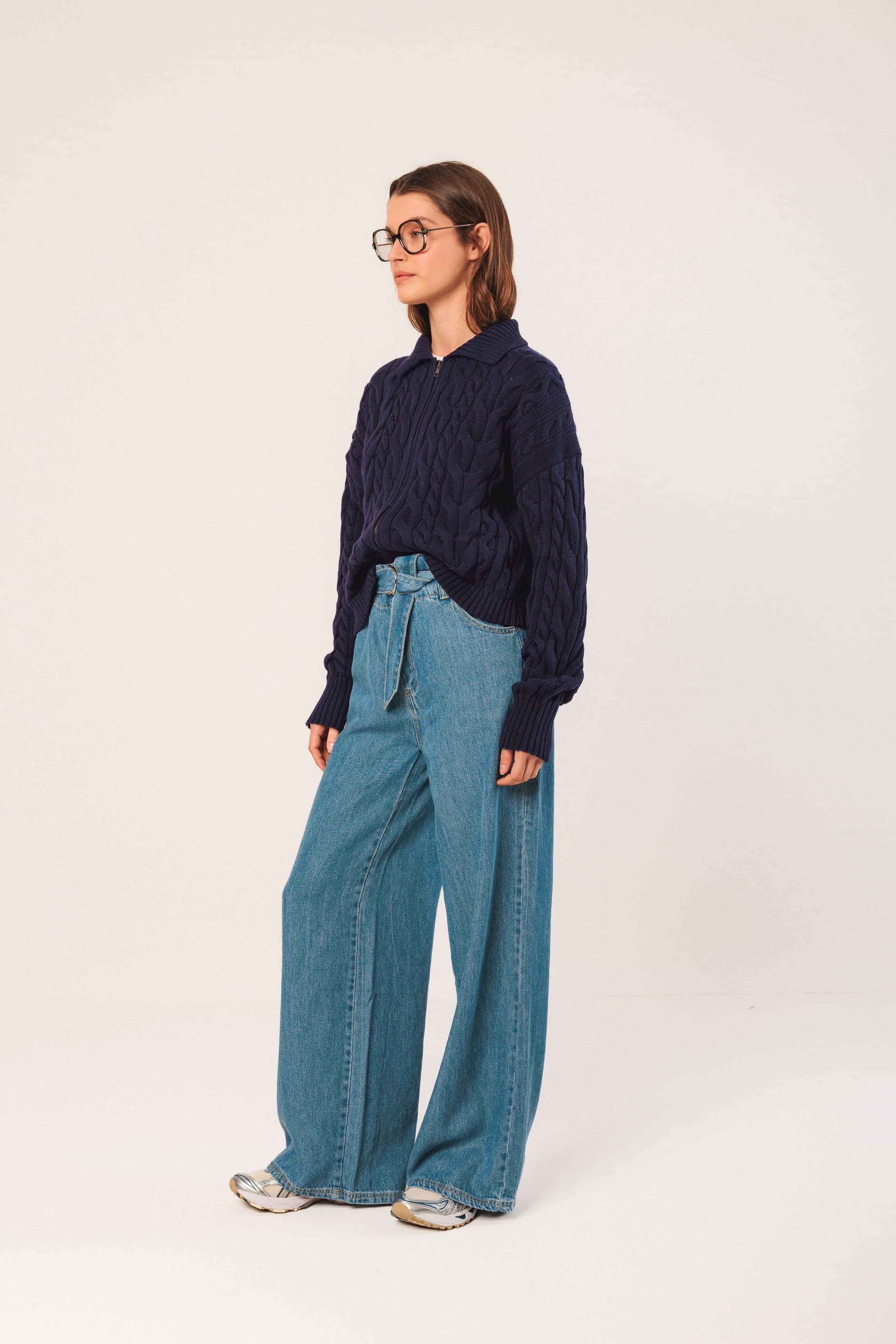 INDI & COLD - Chaqueta Cable Knit - Marino