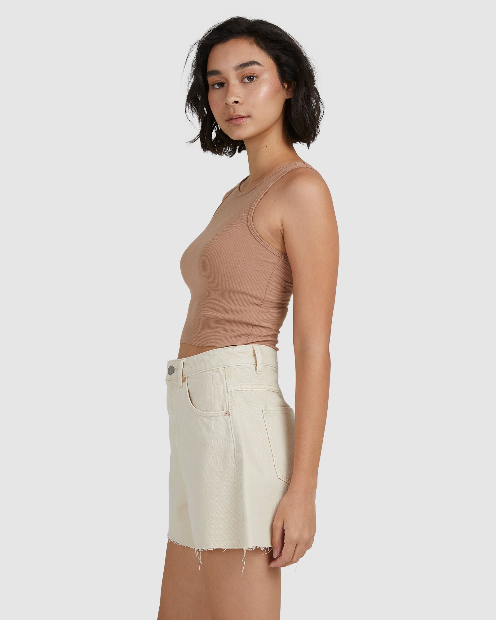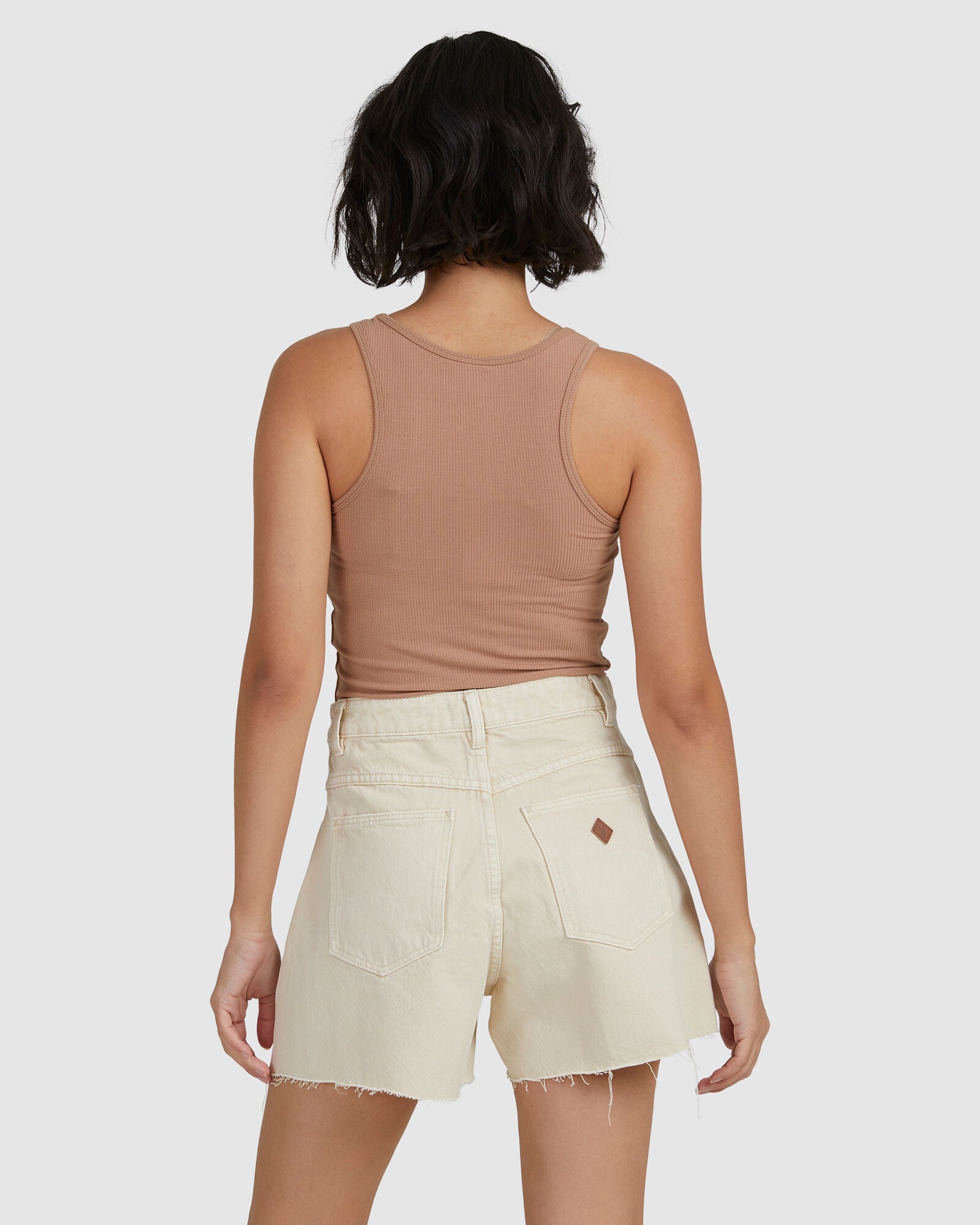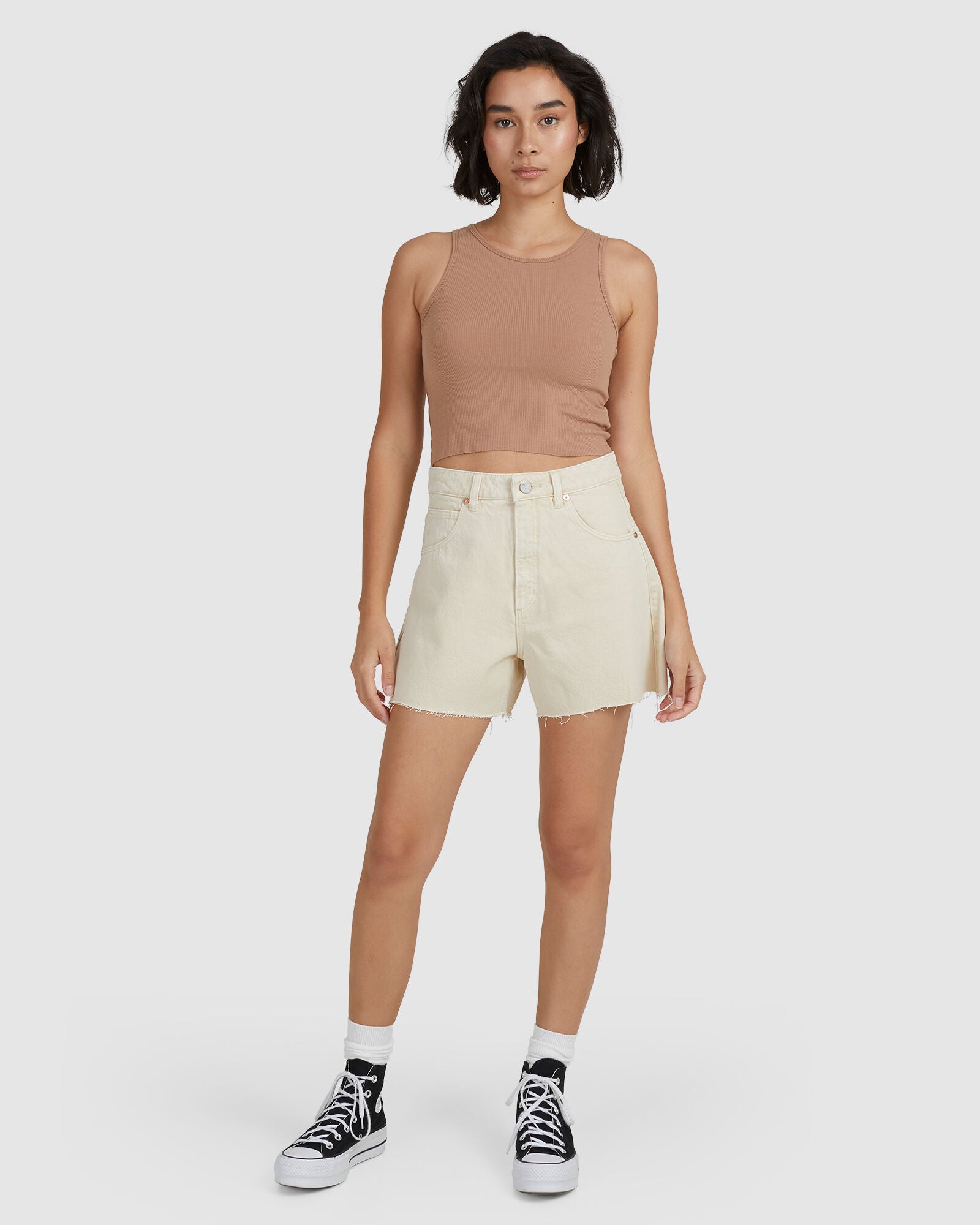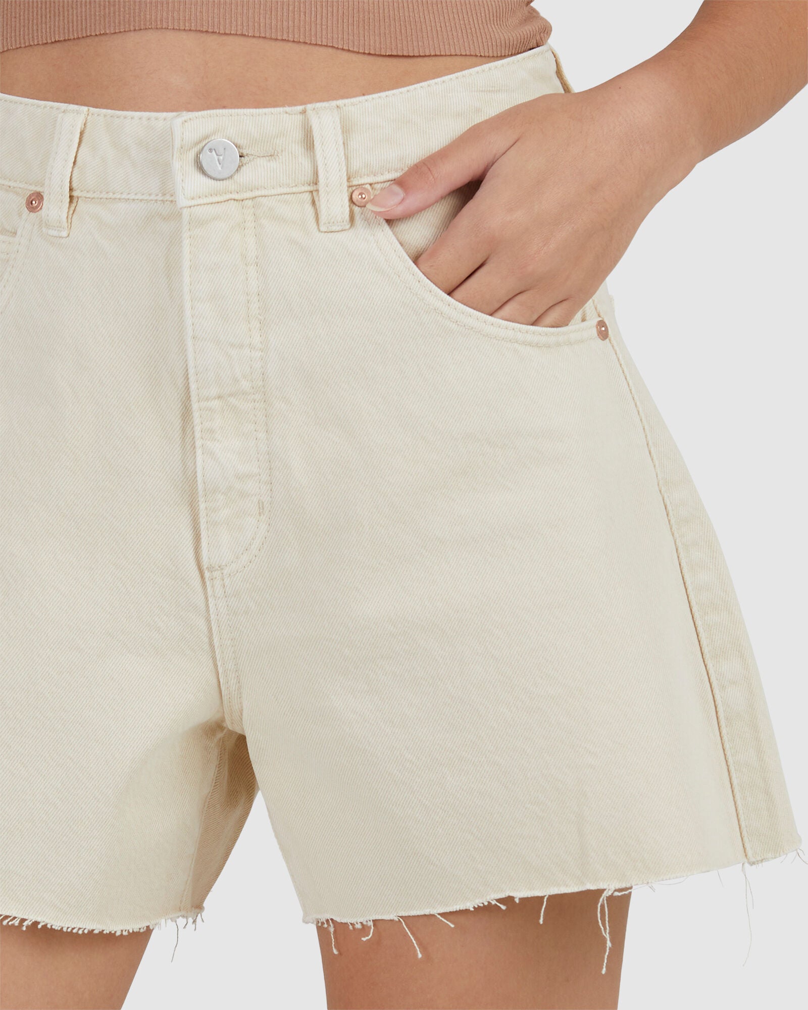 Crafted with a high rise waist shorts that flares. Features a raw hemline. Perfect for festivals & nights on the town
