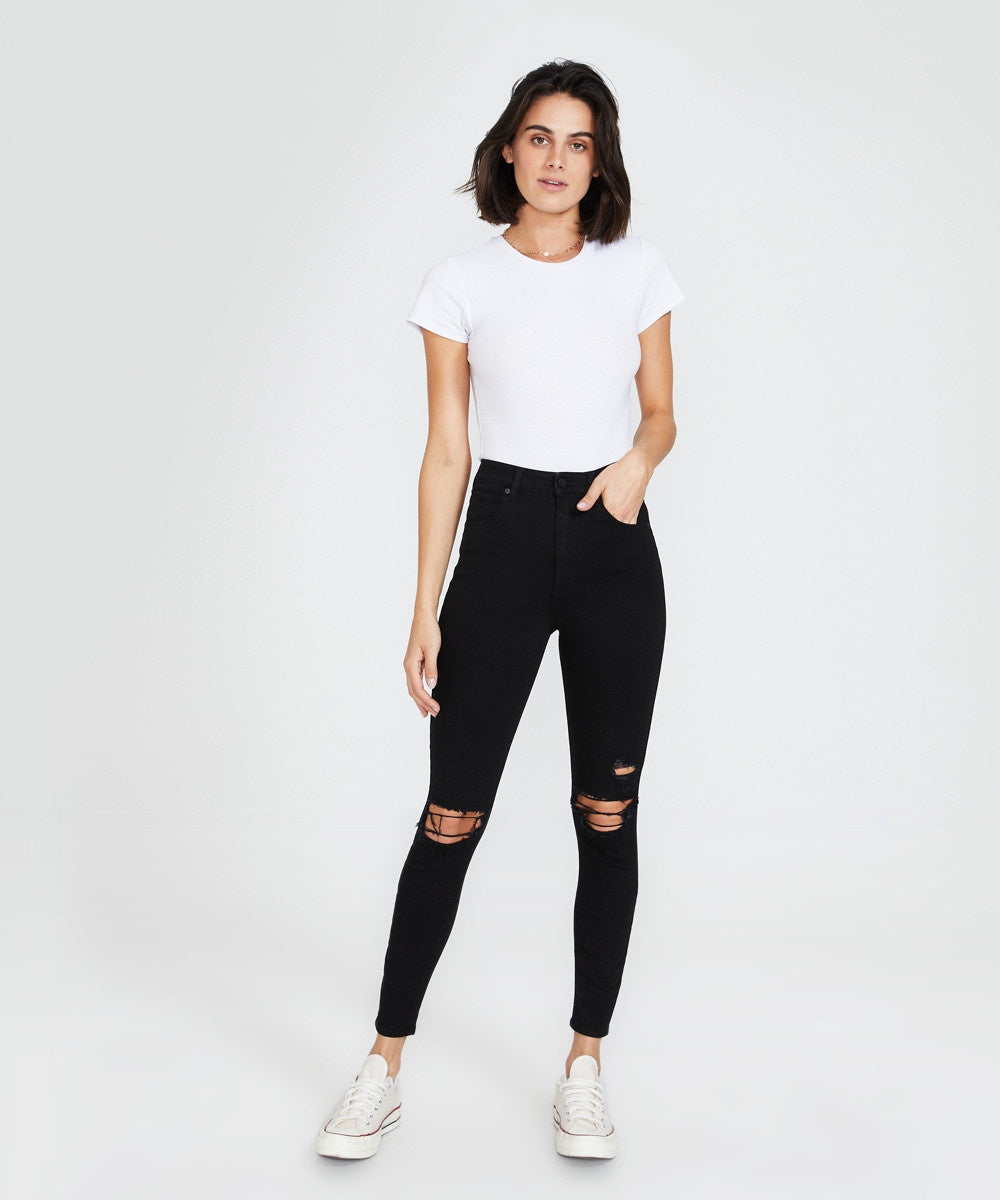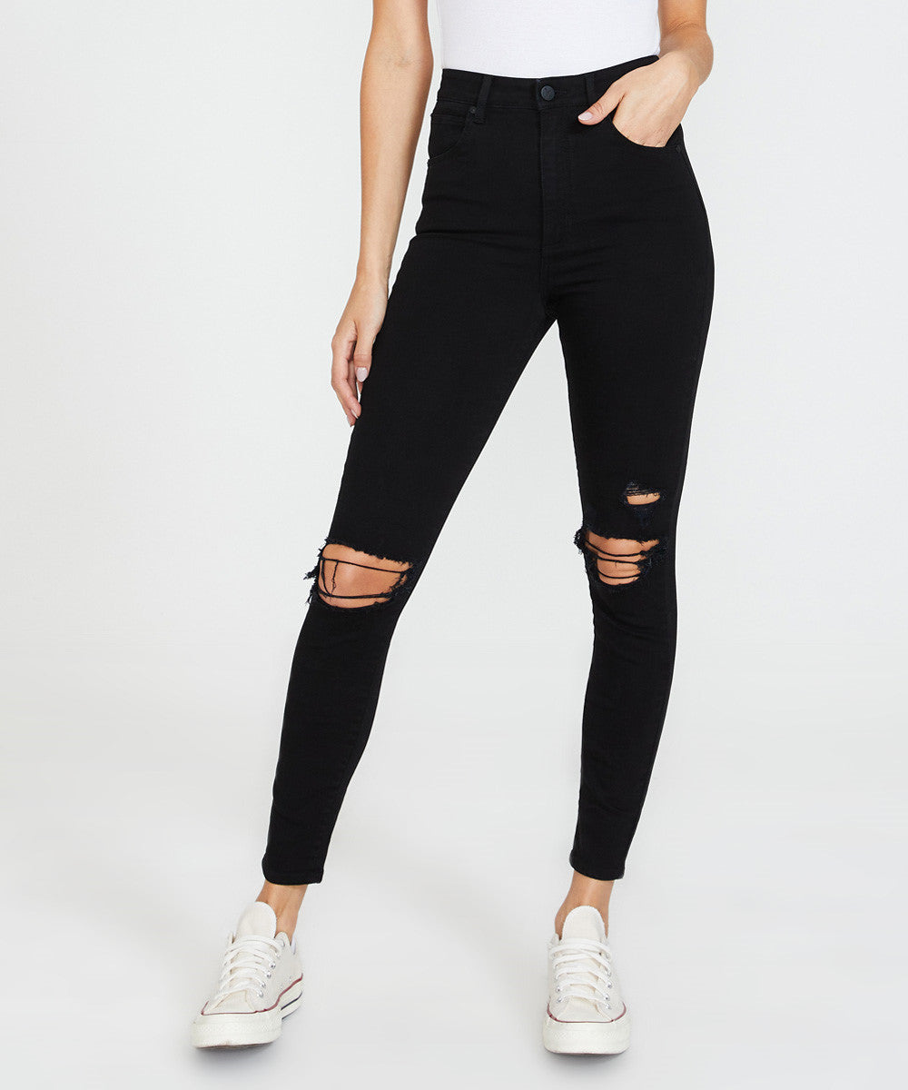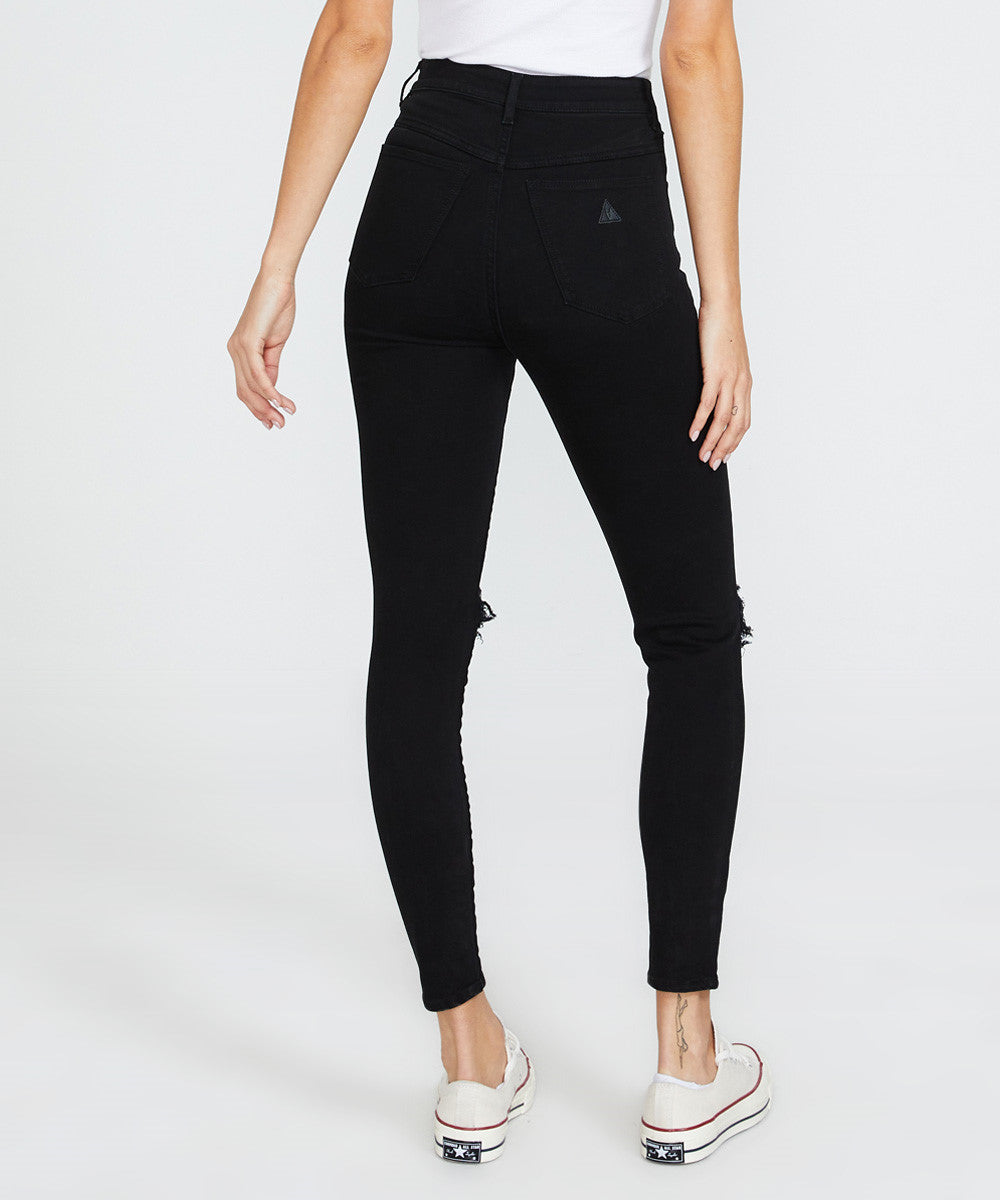 Say hello to the updated & fab version of our Black Magic wash. Formed in super-stretch denim and carefully curated rips that make these the perfect jean for dancing in. These have gone through an over-dying process to create the blackest of black jeans and complimented them with matching trims and stitching.
