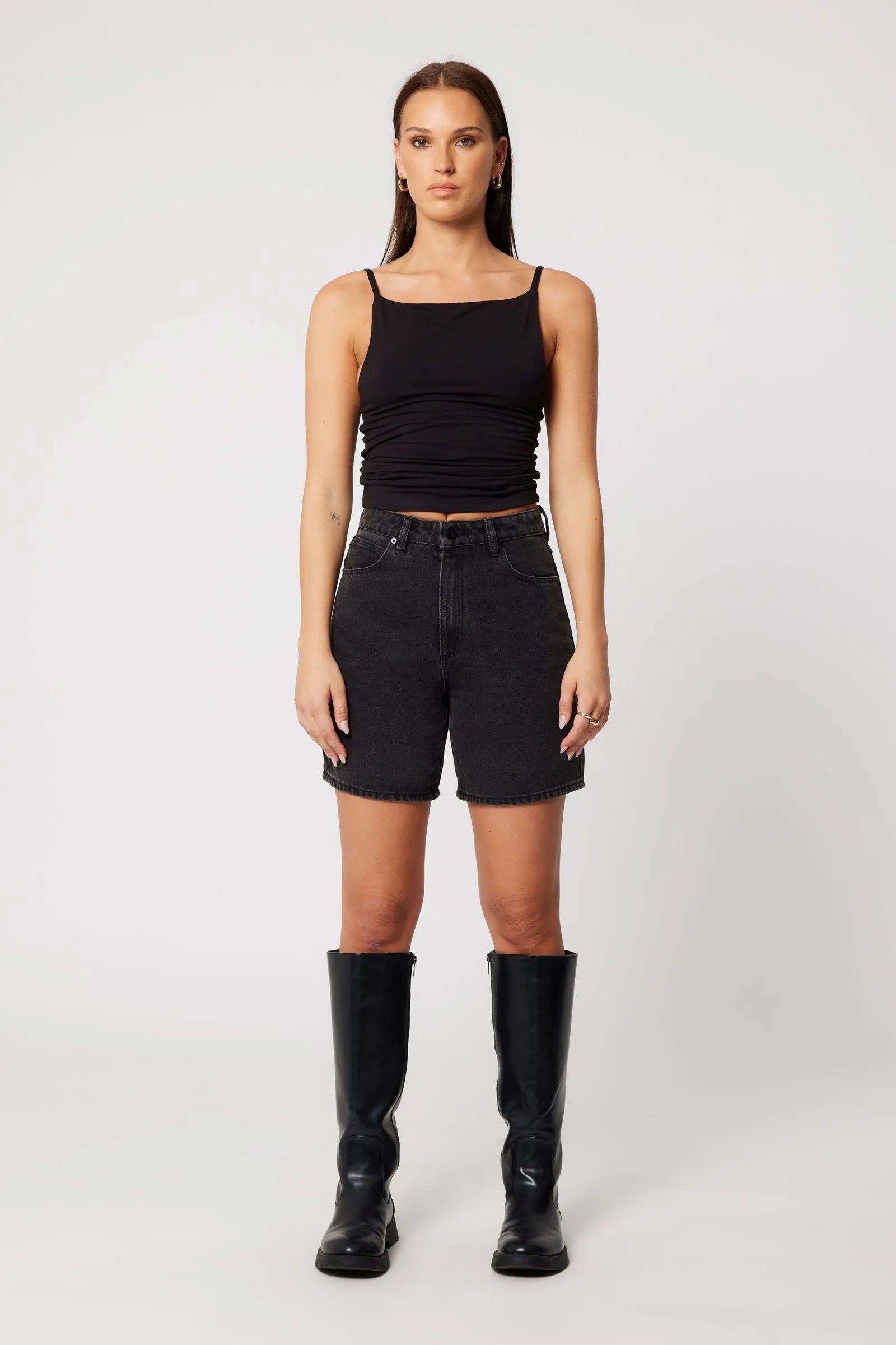 The Carrie Short in Heidi is high waisted, relaxed wide short made with non-stretch rigid denim.