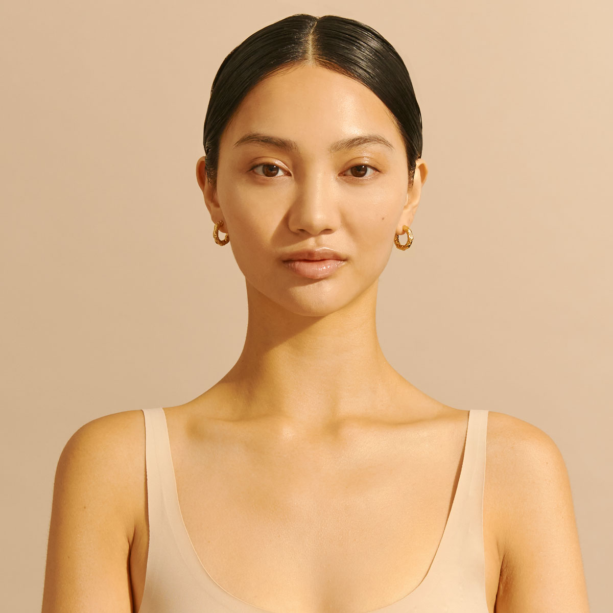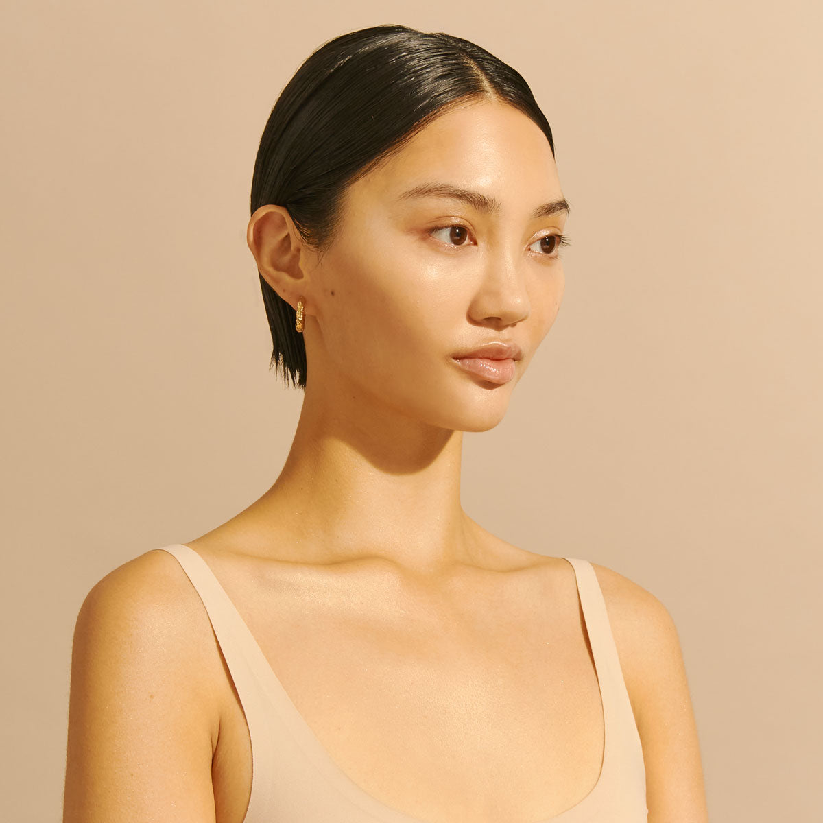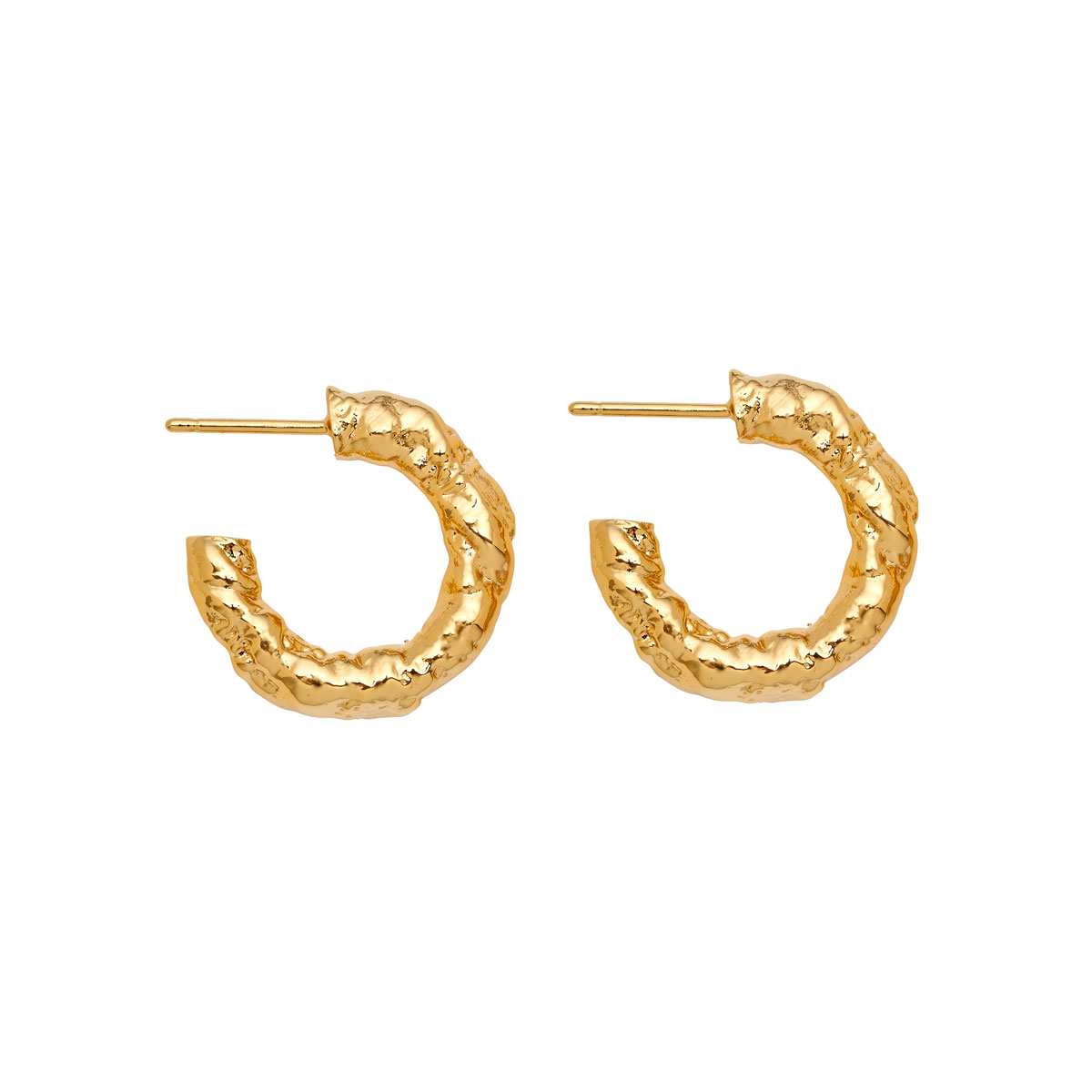 The Crawford Earrings are a wear - with - anything pair that are both minimal and distinct. This design features a classic hoop silhouette from textured 24K gold plated brass, finished with hook and clasp fastenings.