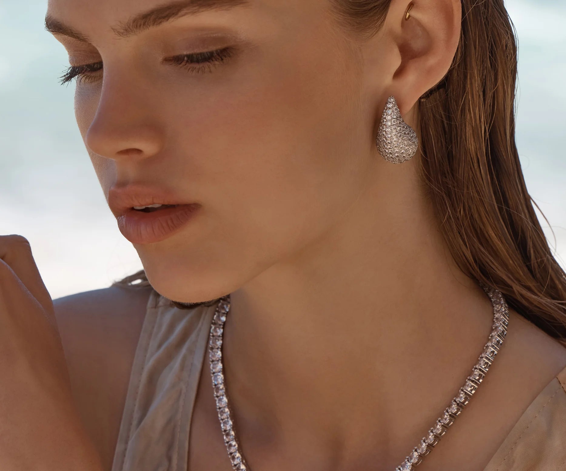 Shine bright in the Levant Necklace, boasting sparkling cubic zirconia crsytals in a classic silhouette. Wear yours with the matching Levant Bracelet now and forever. Handcrafted in Italy.