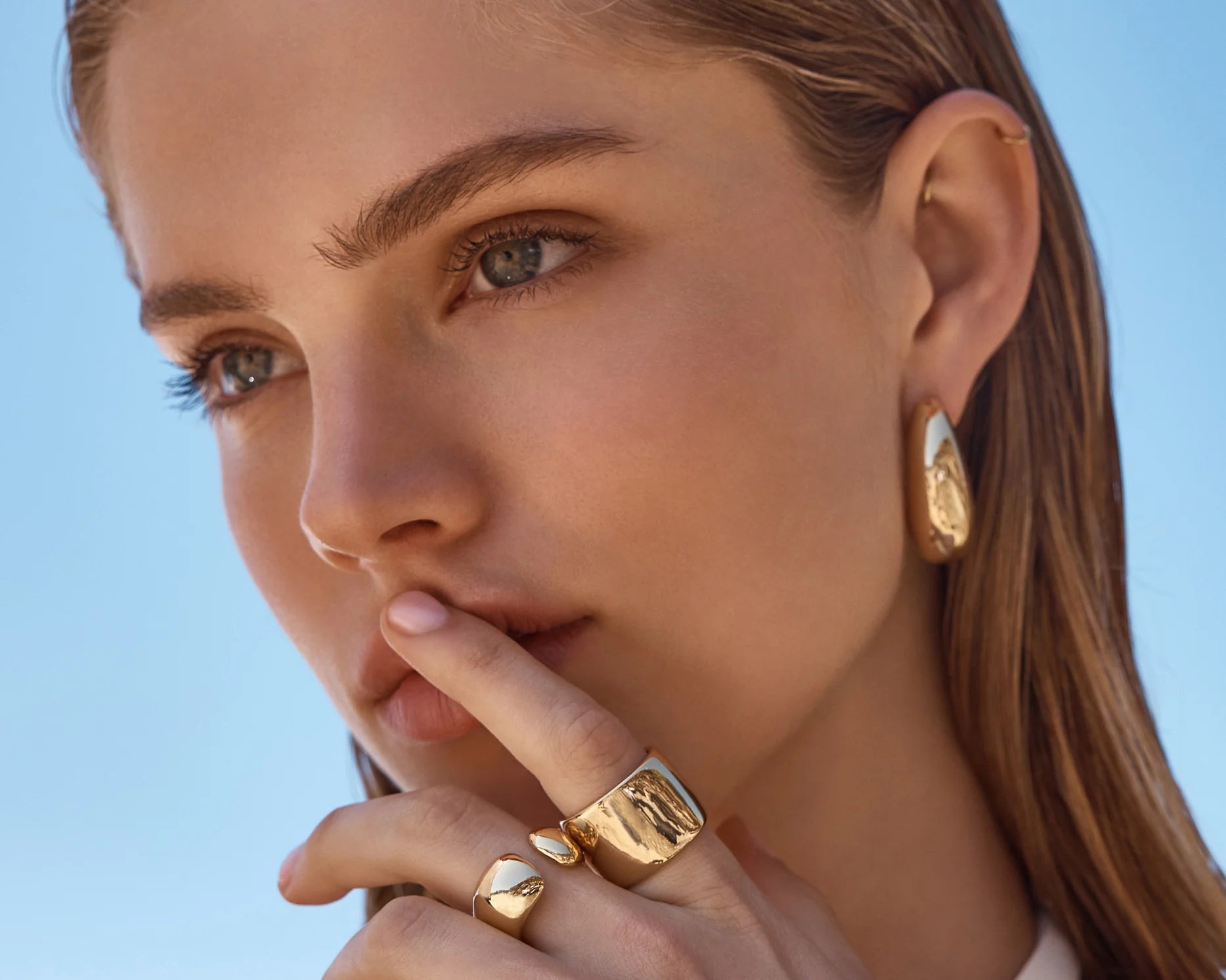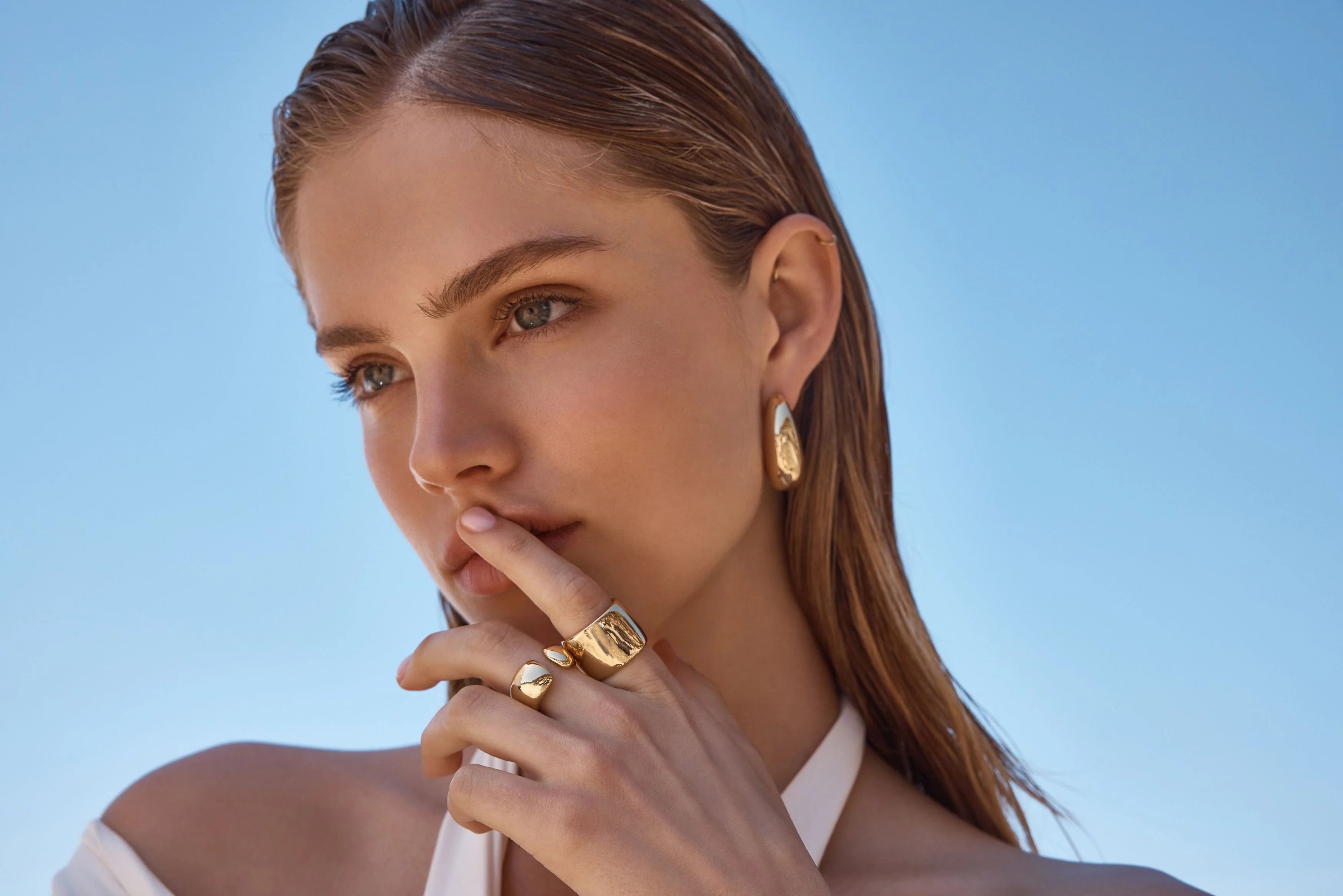 The Moorea Ring showcases an organic shape that is open ended. Handcrafted in Italy.