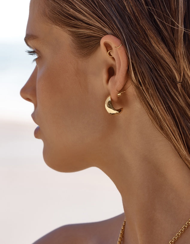 Meet the Petite Hvar Earrings, your ultimate wardrobe essential. Featuring an organic shaped hoop in a modern, minimalist design. The perfect day to night styling. Handcrafted in Italy.