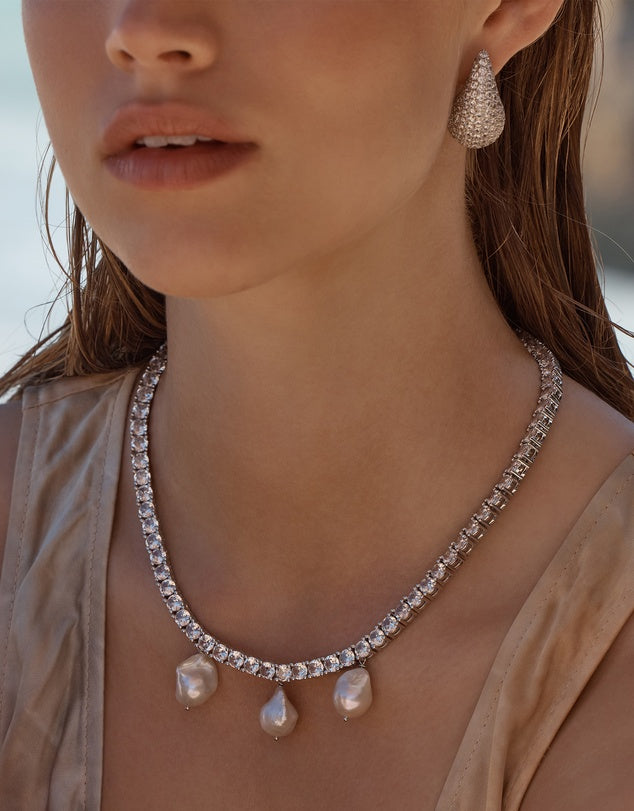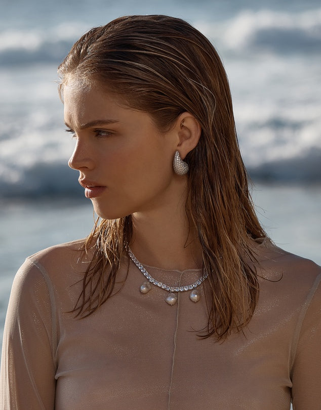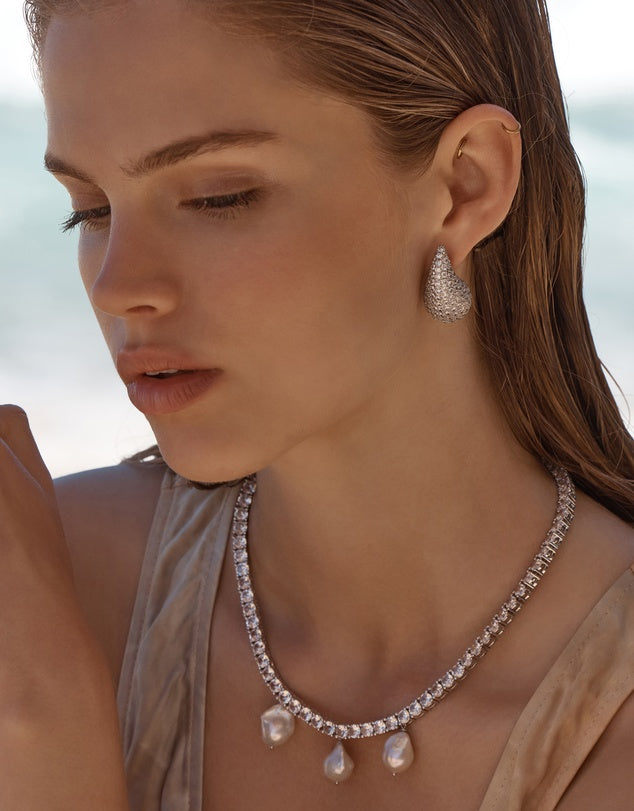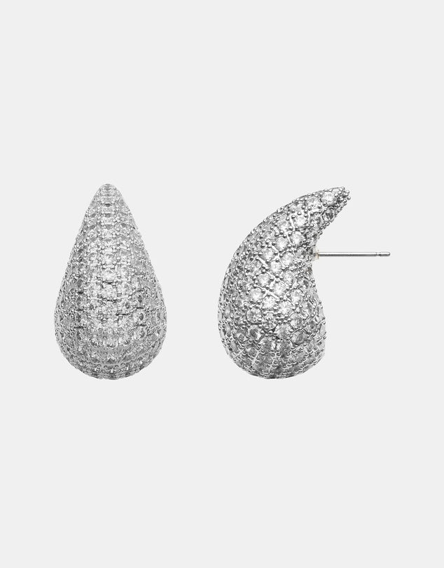 Stand out in the glamorous Tahiti Earrings. Featuring an organic teardrop shape encrusted in sparkling cubic zirconia crystals, shimmering from every angle. Handcrafted in Italy.