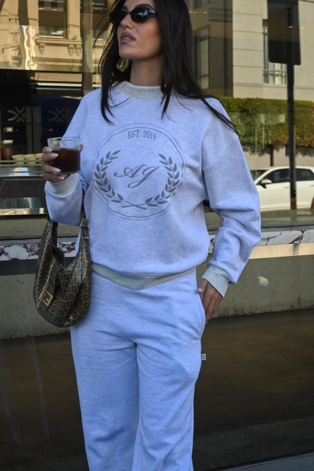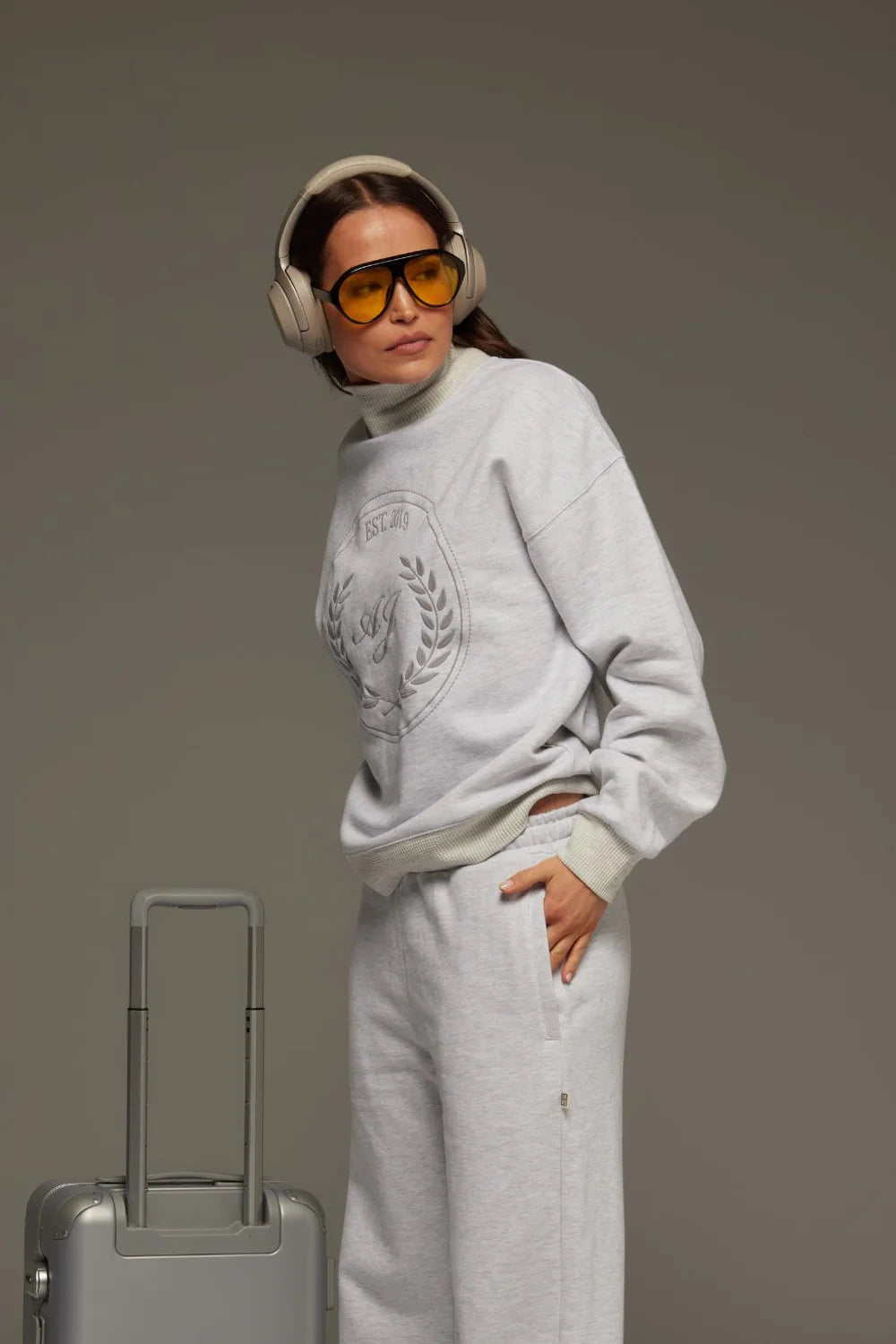 ARAMINTA JAMES - AJ Crest Turtleneck Sweatshirt - Grey Marle
