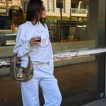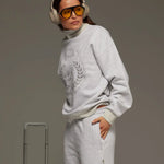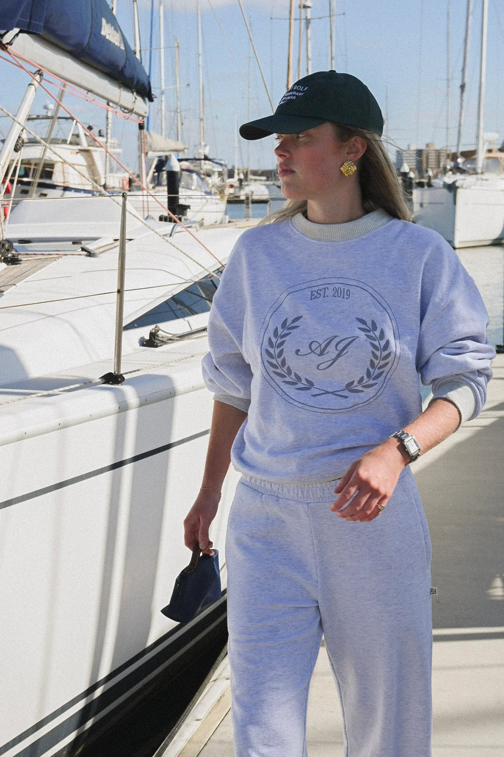 Our AJ Crest Turtleneck Sweatshirt in Cloud is cut in a beautiful cotton brushed fleece, with contrast waffle roll collar, cuffs and hem. Featuring an exclusively designed embroidered graphic on the front, our AJ Crest Turtleneck Sweatshirt is relaxed yet elevated and practical. Pair with our Snap Hem Trackpant in Cloud and favourite sneakers for your next cool-girl look.