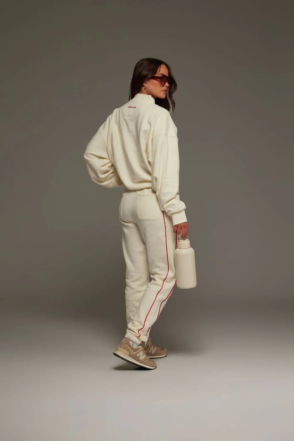 Introducing our Mont Blanc Sweatshirt in Coconut. Your new statement sweatshirt with textured shearling applique on the front, for an effortlessly sporty-chic look. Featuring a ribbed high-neck for cooler days, and cut in our signature soft brushed fleece with thick rib trims. Pair yours with our James Trackpant in Coconut for a comfortable yet captivating leisurewear look.