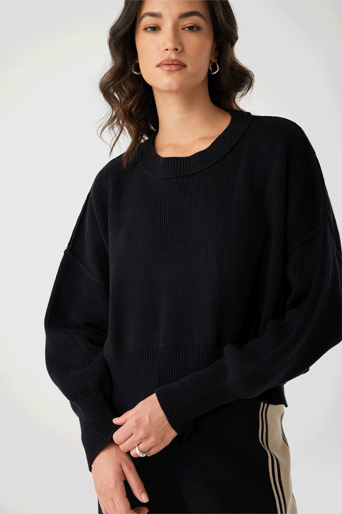 Timeless and effortless. The Harlo Cropped Sweater in Black blends a slouchy, cropped silhouette with a wide crew neck and subtle side splits for natural movement. Its breathable knit and relaxed shape make it an easy staple for any wardrobe.