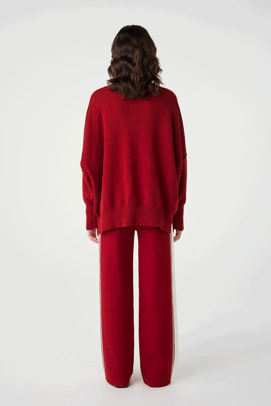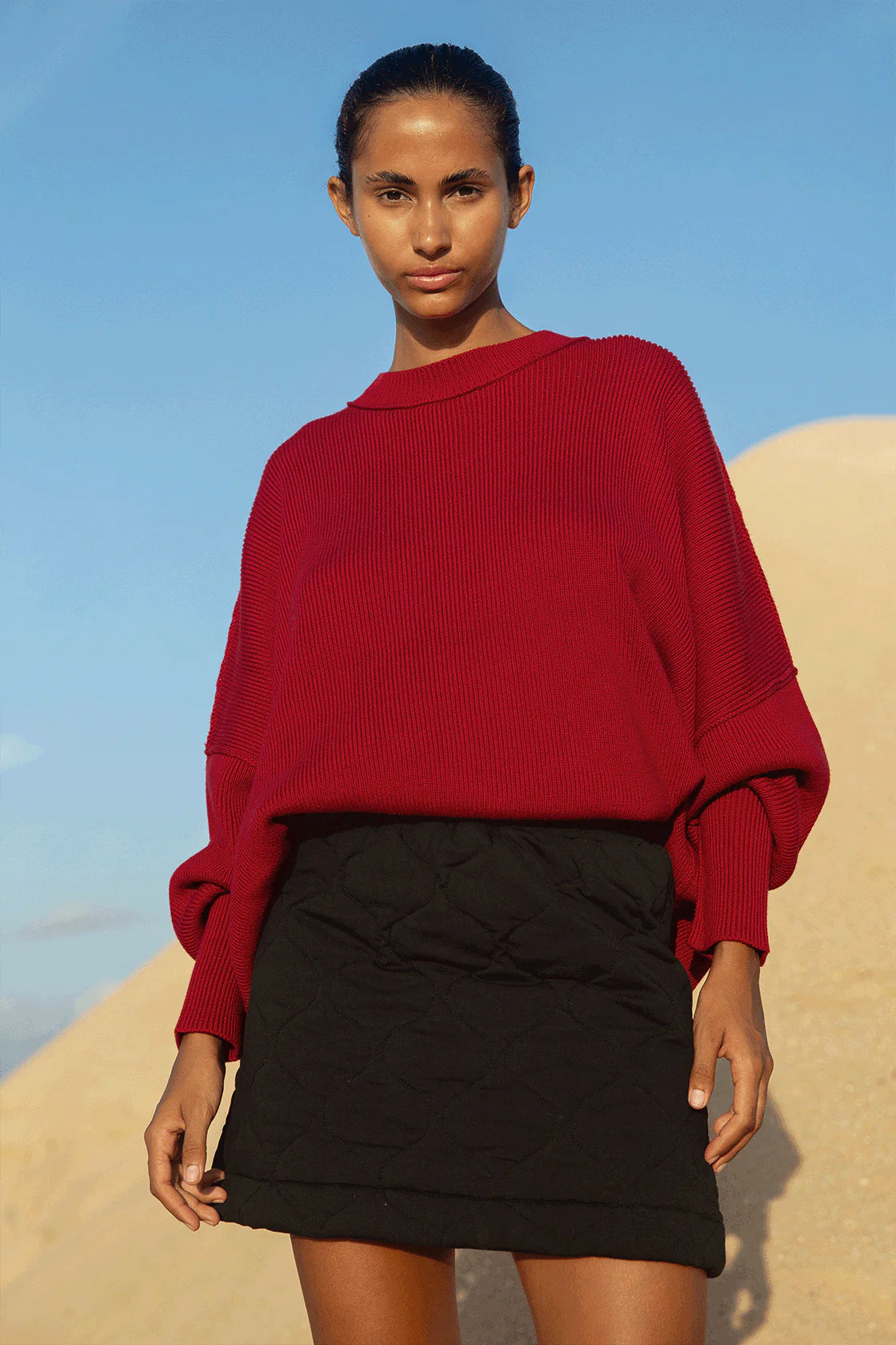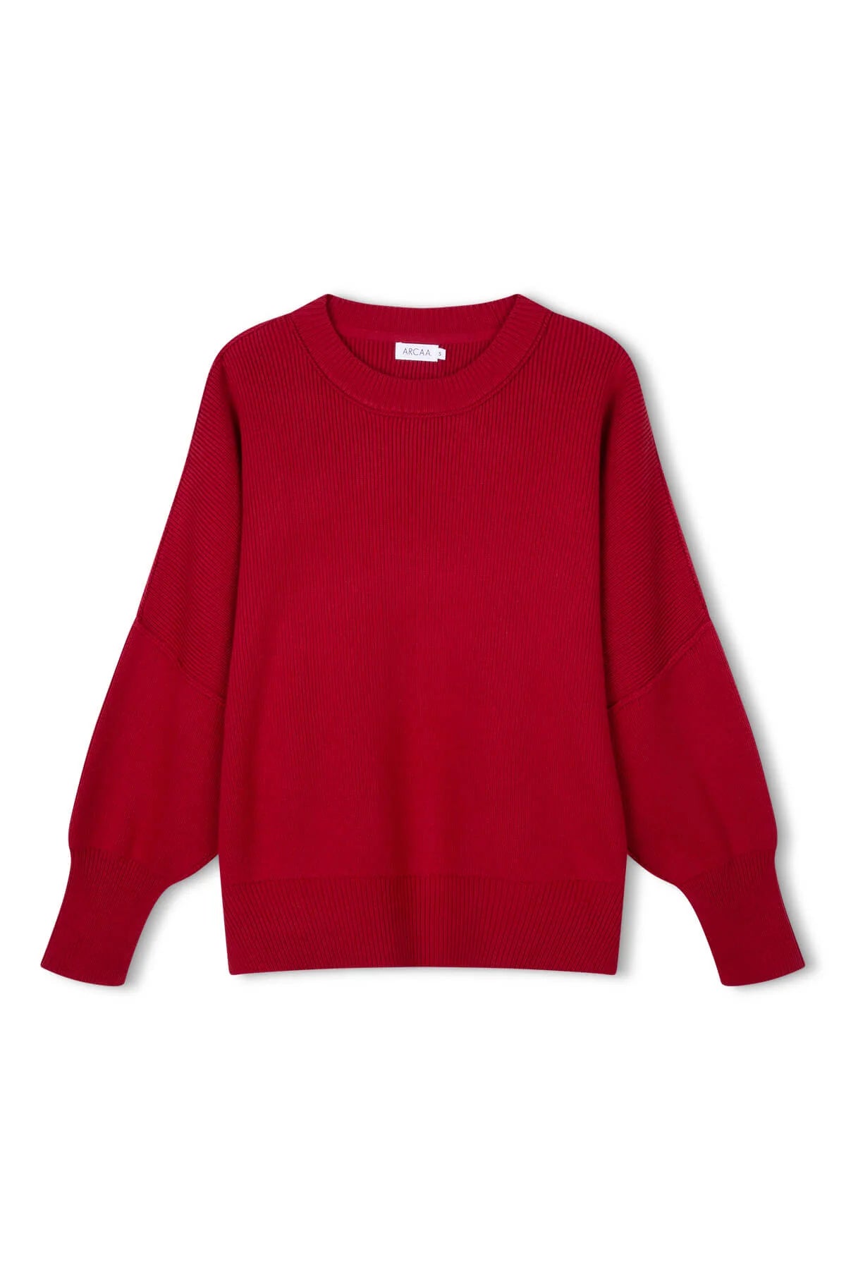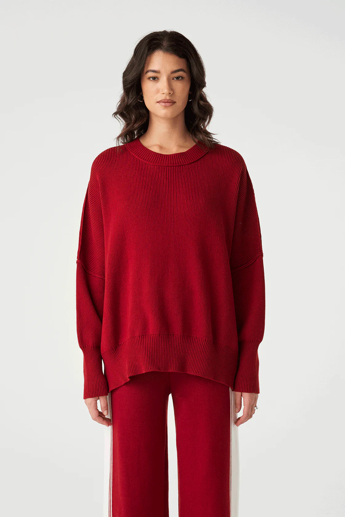 The Harper Knit Sweater in Wine features an oversized, slouchy fit with a wide crew neck for a relaxed yet refined look. Its soft, stretchy knit offers all-day comfort, making it a perfect layering piece for any season.