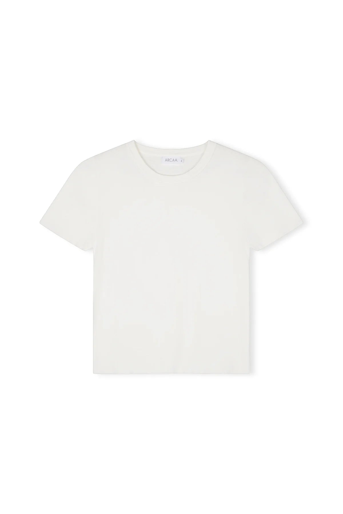 The Maggie Tee in Cream is a timeless wardrobe essential with a sleek, fitted design. Crafted from a smooth and lightweight cotton knit, it features cap sleeves and a classic crew neck for a clean, polished look. Perfect for layering or wearing on its own, this tee offers both comfort and versatility.