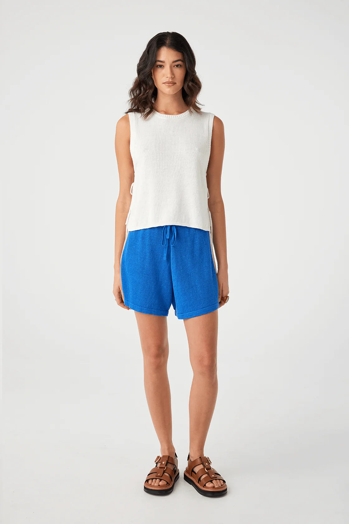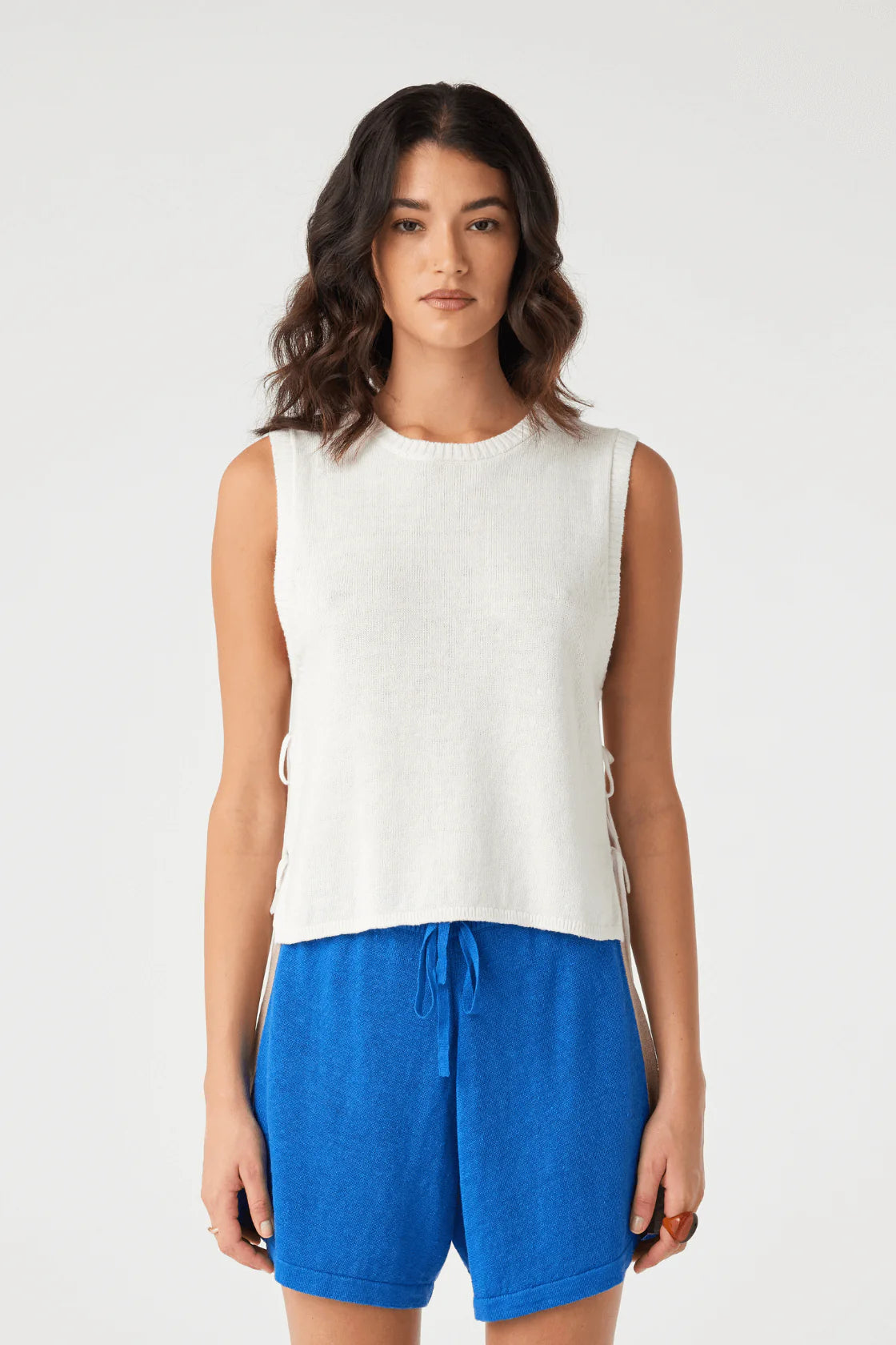 The Poppy Tank in Cream offers effortless summer styling with a relaxed, cropped fit. Featuring a classic crew neck and adjustable side tie details, it’s both comfortable and versatile. Crafted from a lightweight linen-cotton blend, this tank is perfect for layering or wearing on its own.