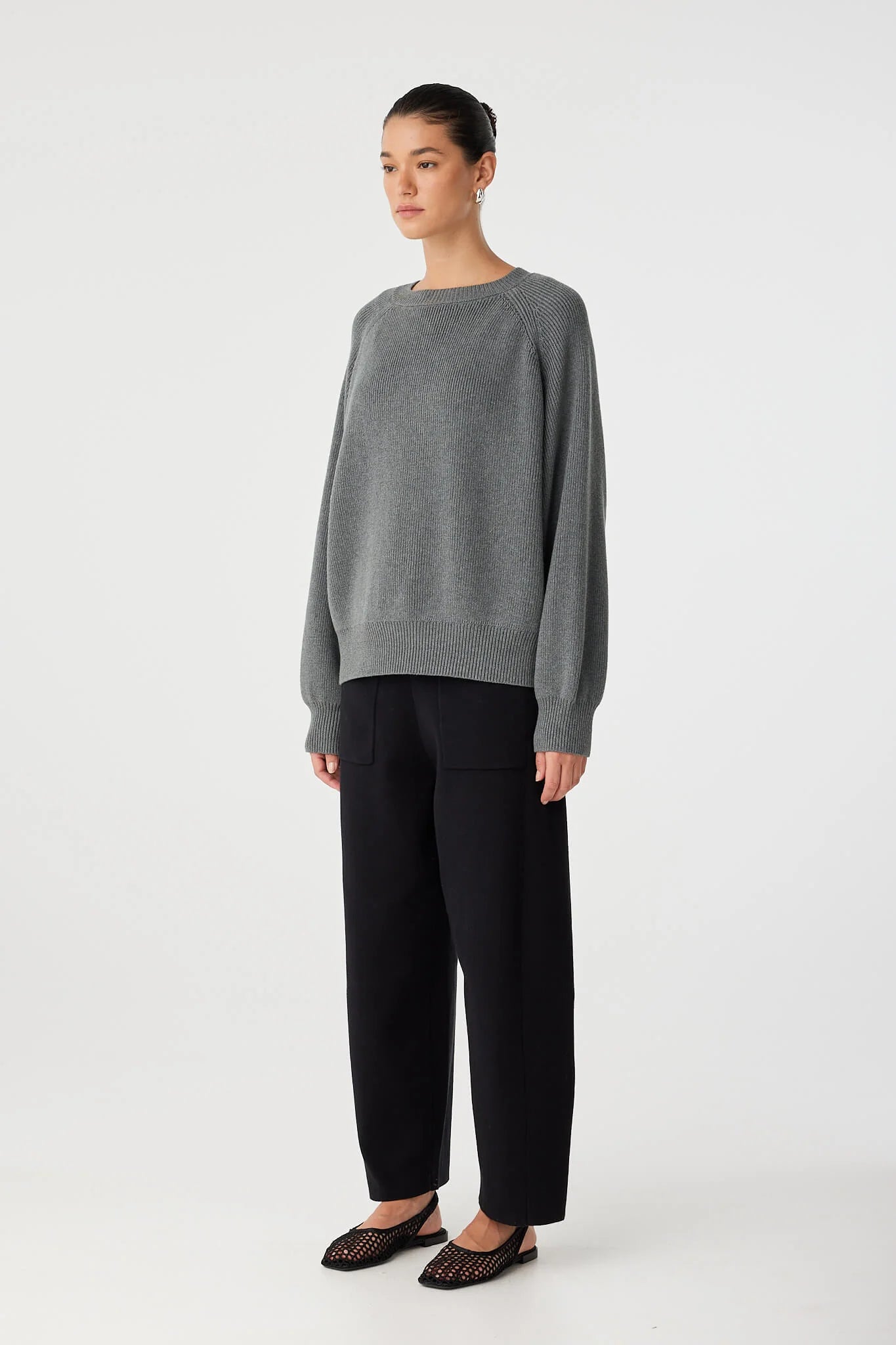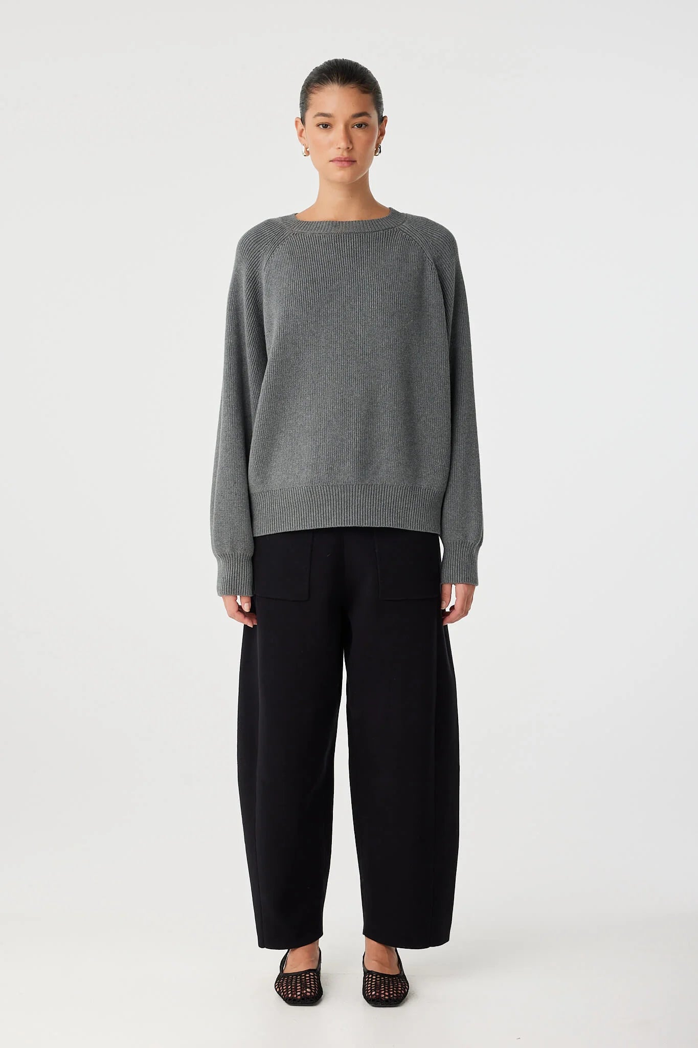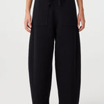 A relaxed knit pant with quiet structure and shape. The Rylan features a soft barrel-leg silhouette, front patch pockets and a drawcord waist for adjustable comfort — wear it high or low rise. Crafted in a breathable organic cotton stretch knit for everyday movement.