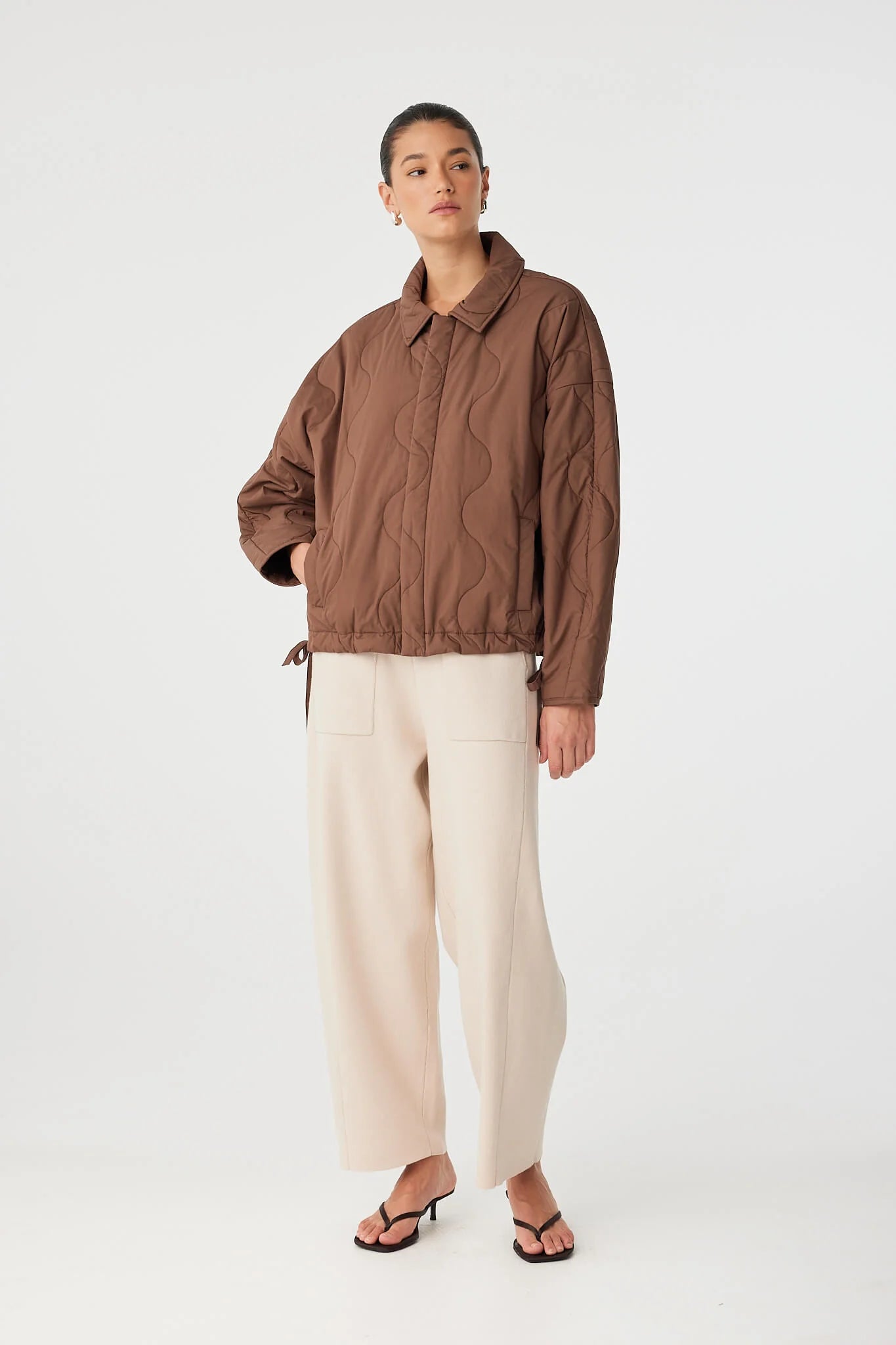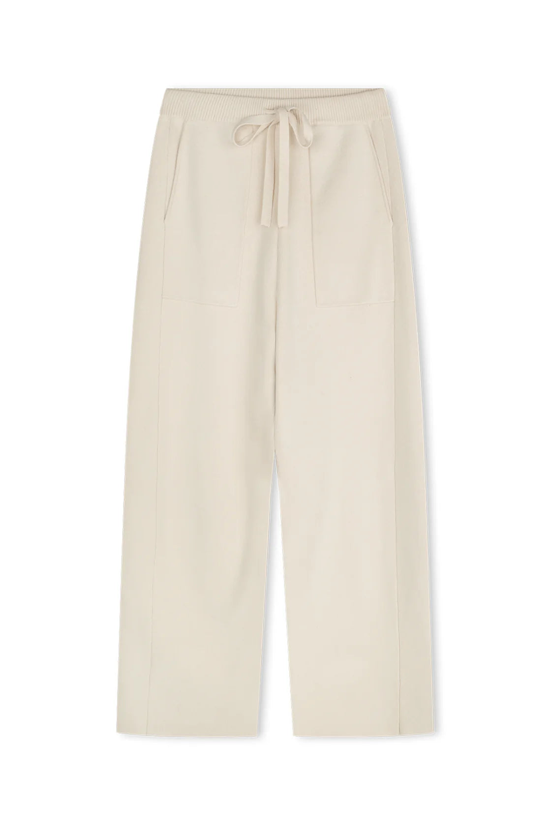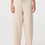 A relaxed knit pant with quiet structure and shape. The Rylan features a soft barrel-leg silhouette, front patch pockets and a drawcord waist for adjustable comfort — wear it high or low rise. Crafted in a breathable organic cotton stretch knit for everyday movement.