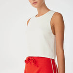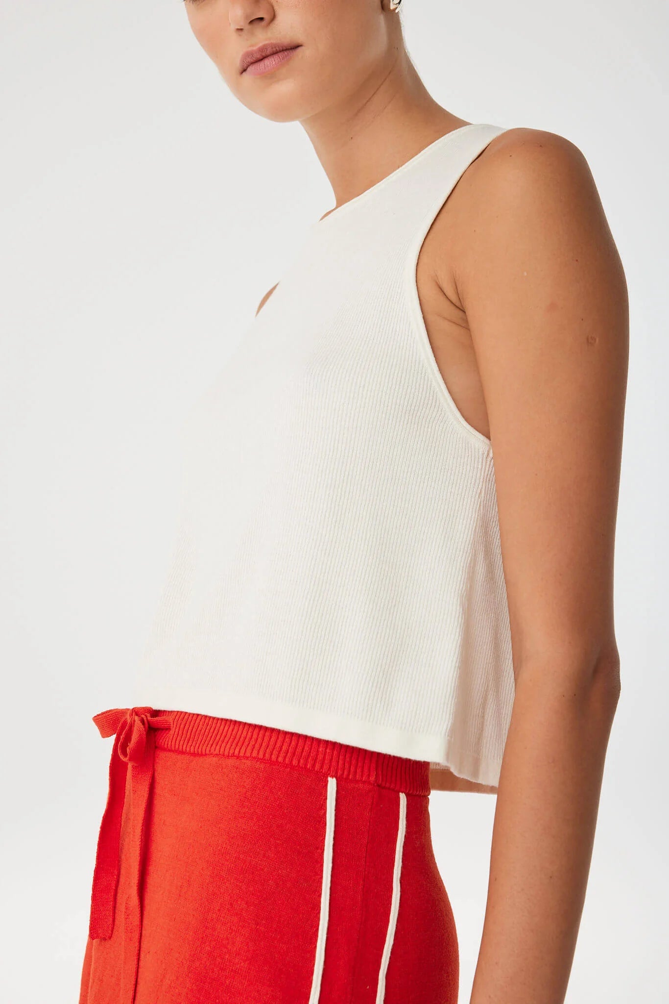 A soft, lightweight knit tank with a relaxed shape and flared hem. The Theo Tank features rolled edges at the neckline and arms for a natural finish. Designed for layering or wearing solo in warmer weather.