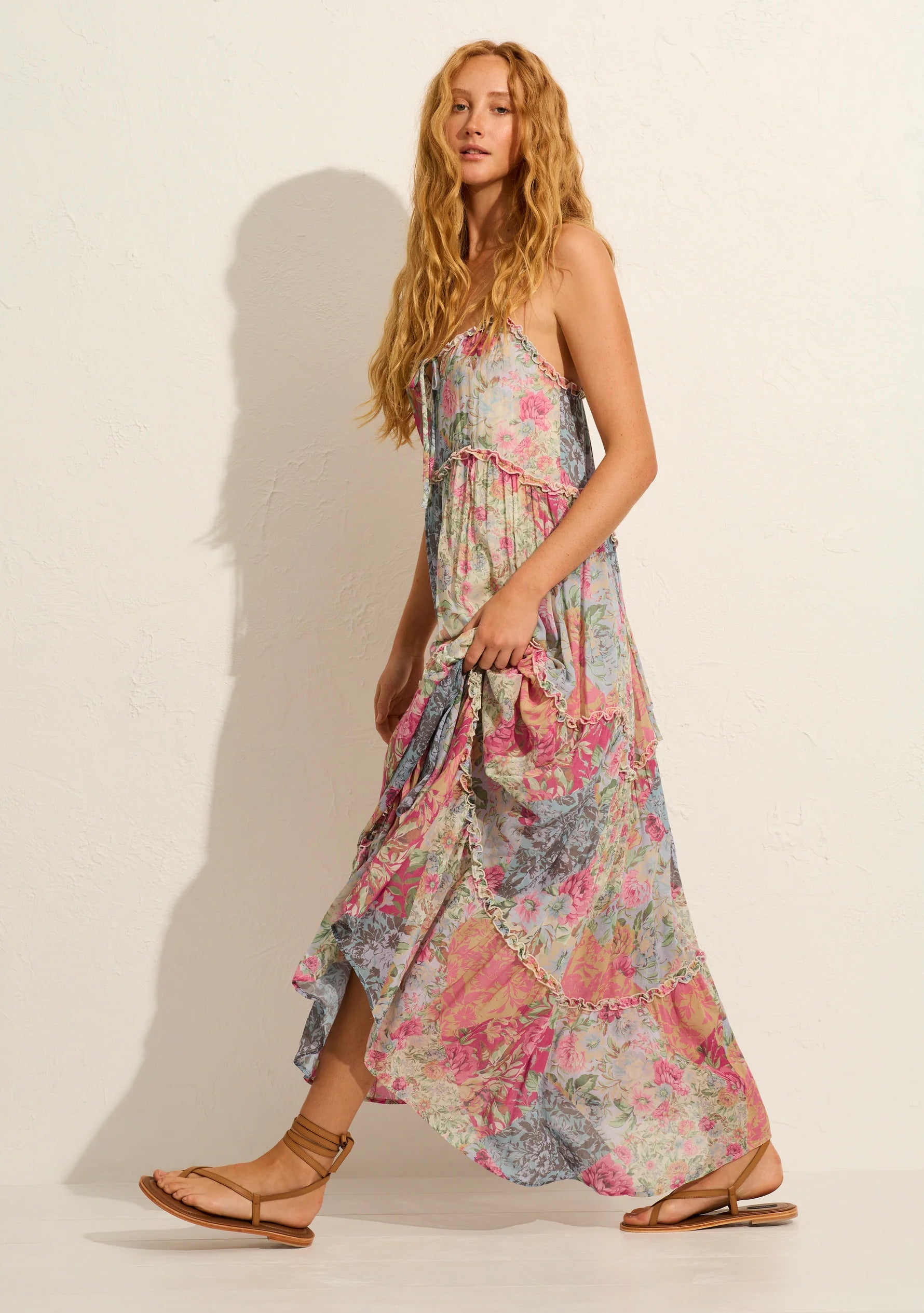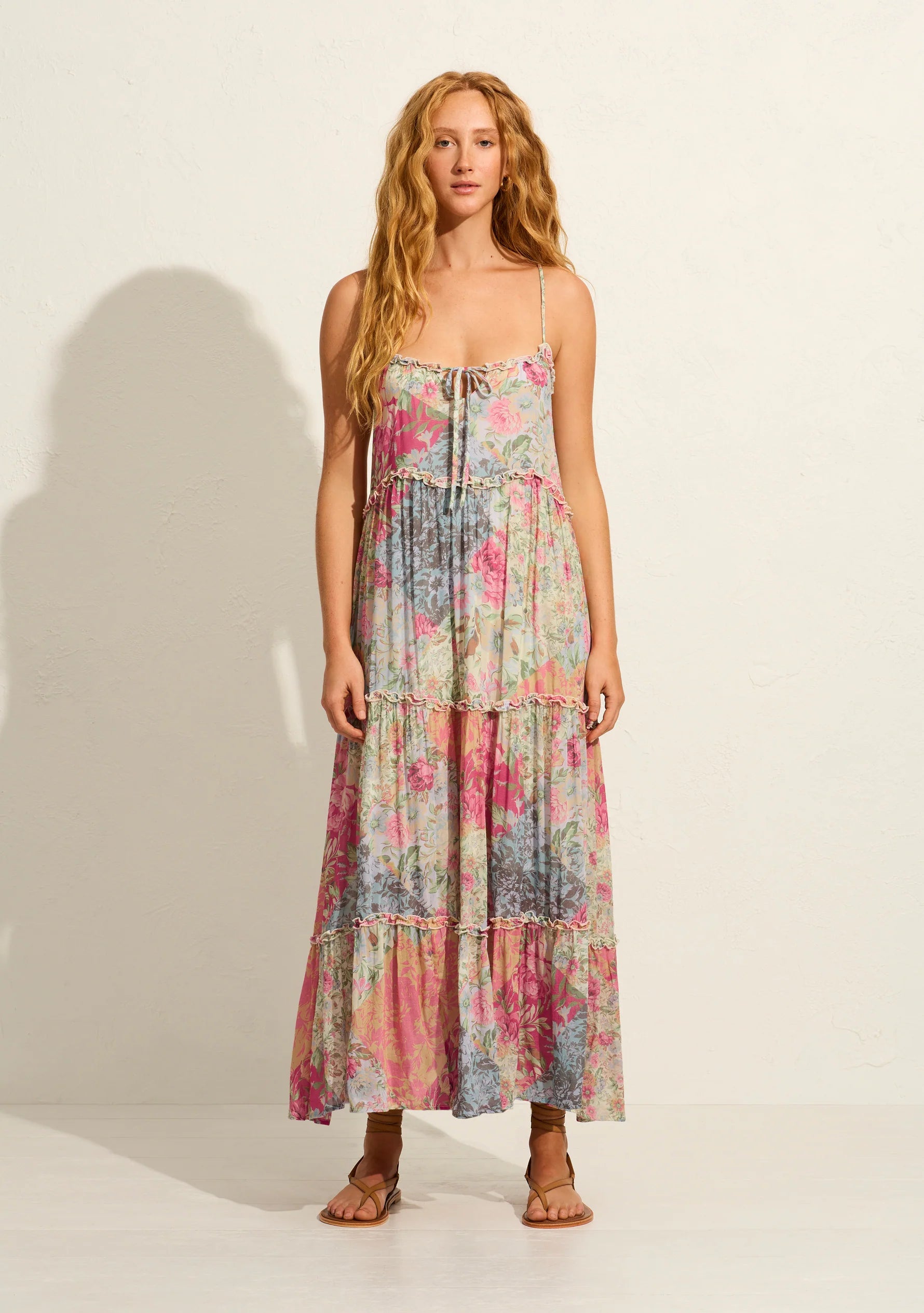 The Constance Maxi Dress in our uber-feminine Fleur print is a stunning, voluminous piece that has you summer-ready. It features a round neckline with a keyhole and tie, adjustable rouleau straps for a personalized fit, and a flowing tiered silhouette with a shaped hemline. An optional waist tie offers a more fitted look, all crafted from the softest lightweight cotton blend. An absolute head-turner.