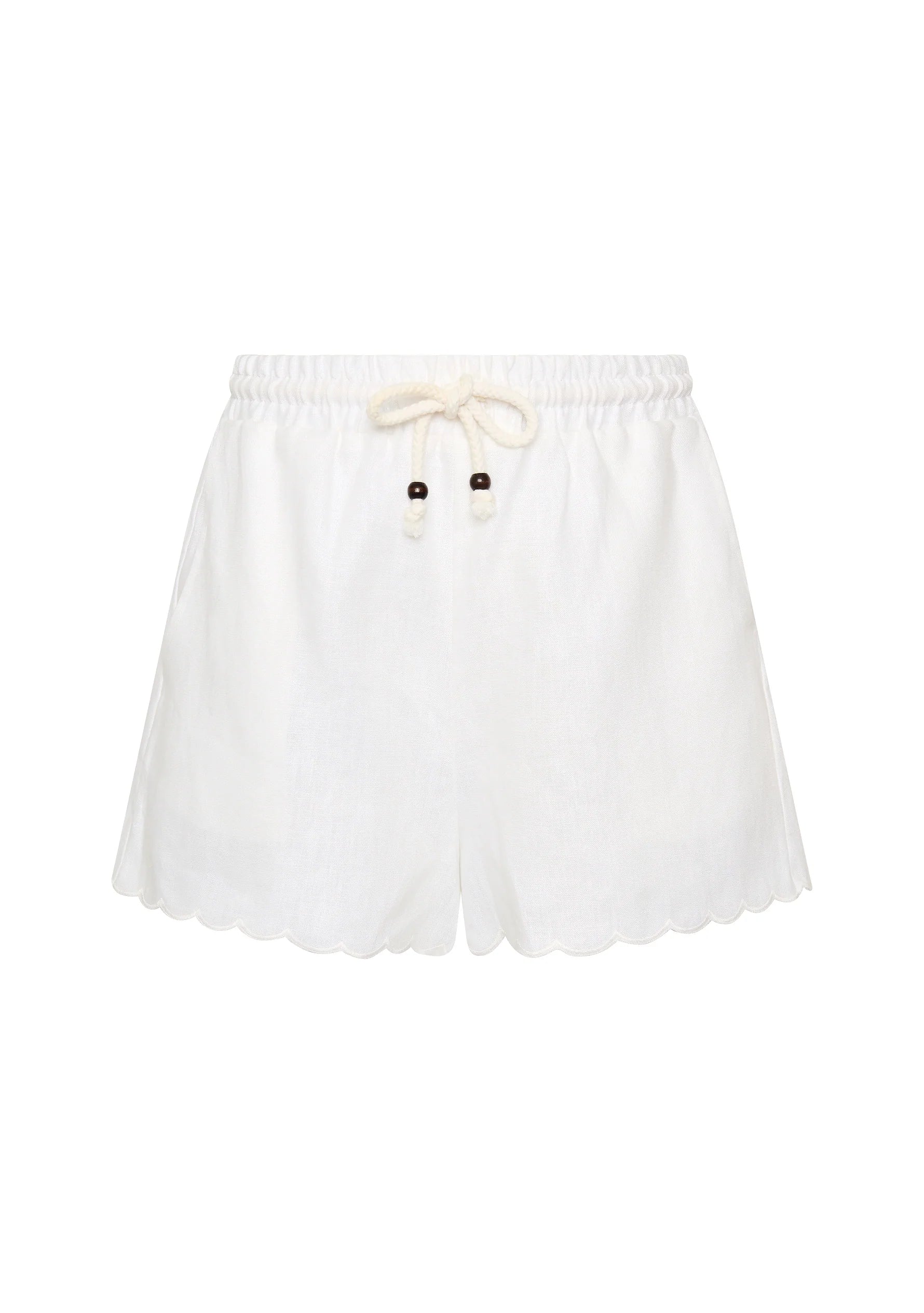 The Riley Short in classic off-white is a stylish summer essential, featuring an elasticated waistband with a contrasting drawcord and a scalloped hem detail. Crafted from 100% linen, these shorts are ready to hang out with you all summer long!