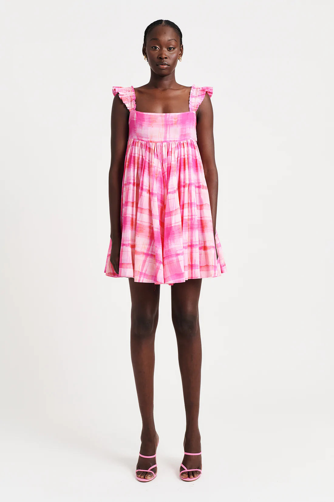 This feminine mini dress is crafted from cotton sateen giving an elevated and lustrous finish to the playful design.