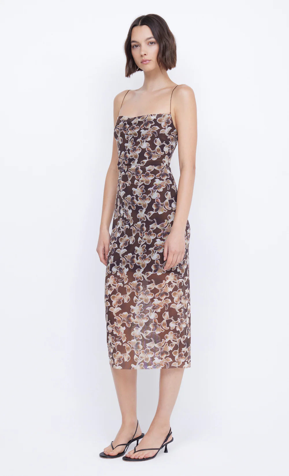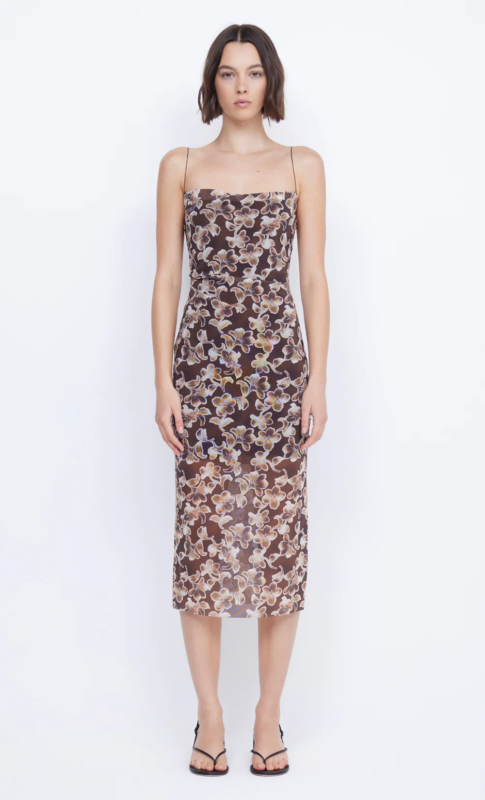 The Herlani Singlet Midi Dress is crafted from a soft mesh printed fabric. The midi dress features thin cord shoulder straps, soft gathers at the waist to flatter the silhouette and lining to the mini length.