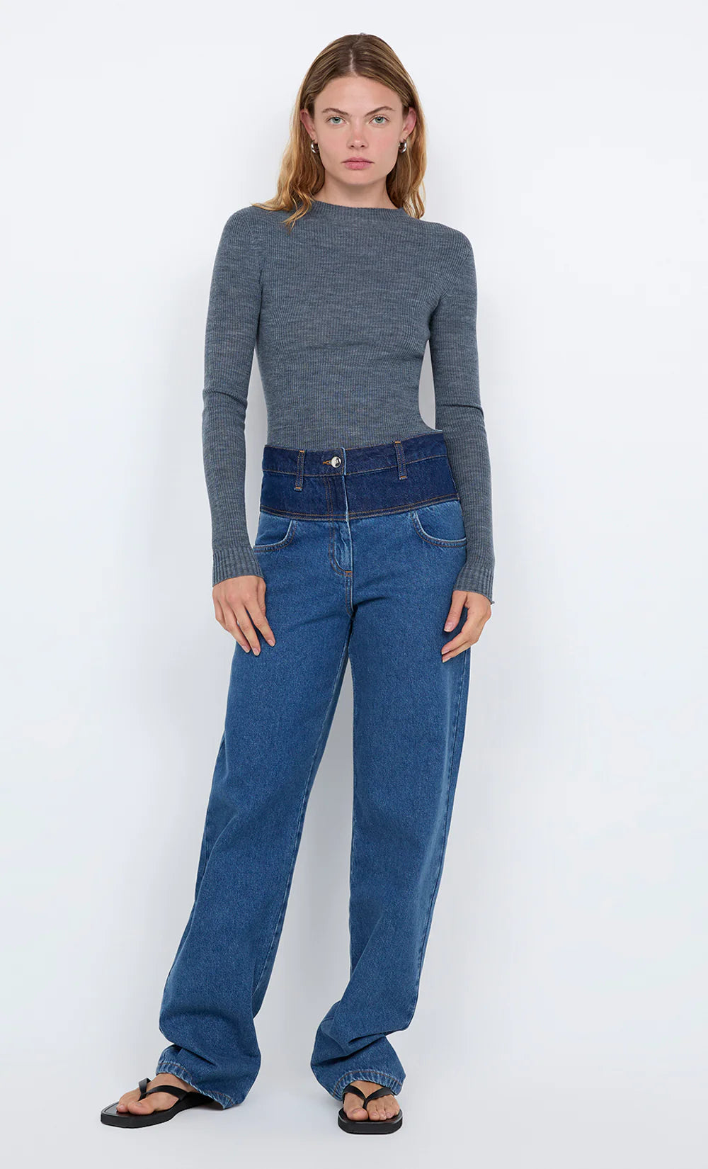 The BEC + BRIDGE Joni L/S Top in Grey is a luxurious wool-blend knit piece that offers both warmth and sophistication. With a classic crew neckline and seamless armholes, this long sleeve top is designed for a smooth, snug fit that contours to the body. The pull-on styling ensures effortless wear, making it a perfect layering piece or an elegant standalone top. Combining comfort with sleek design, the Joni Top is an essential for any capsule wardrobe.