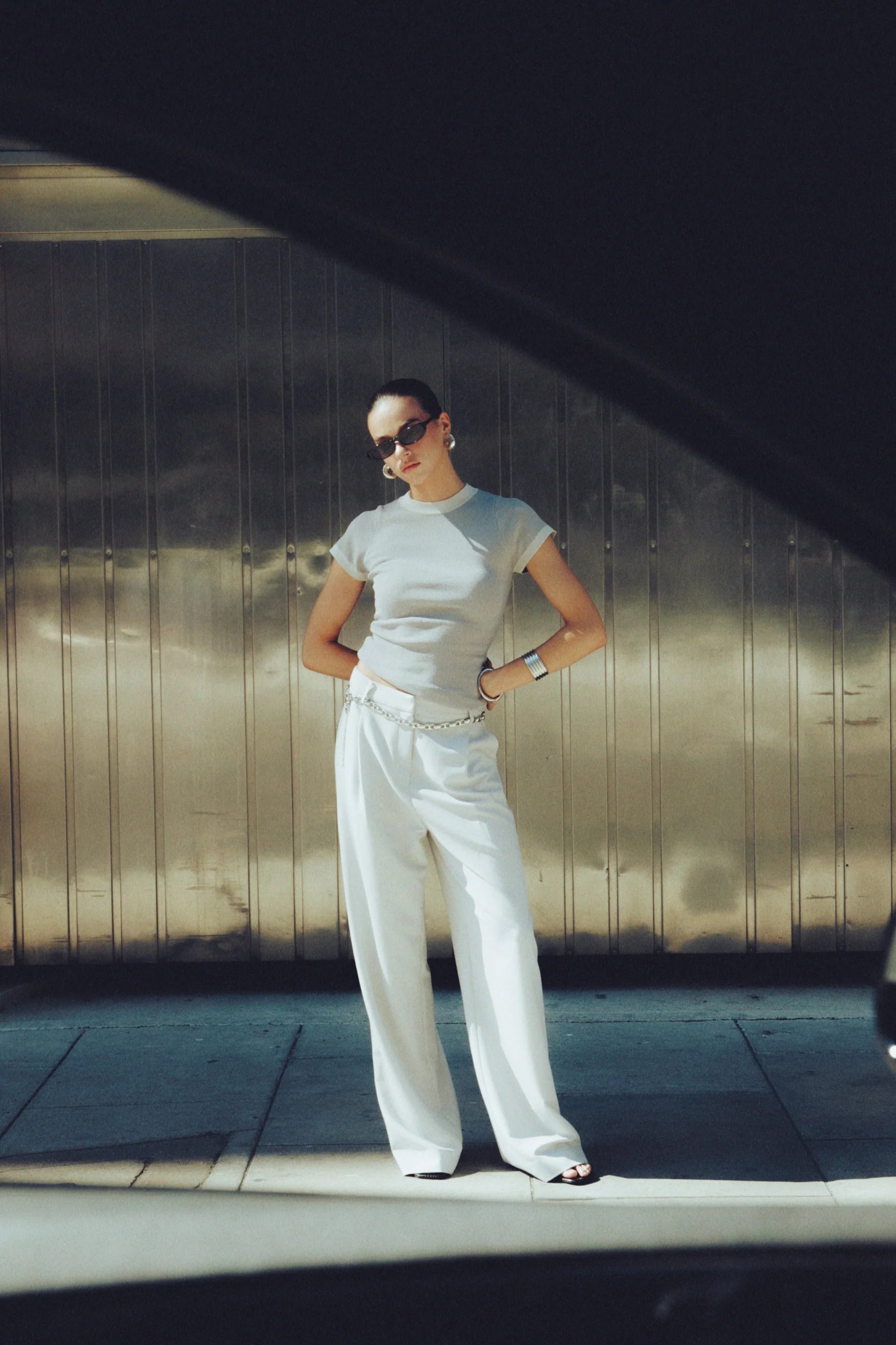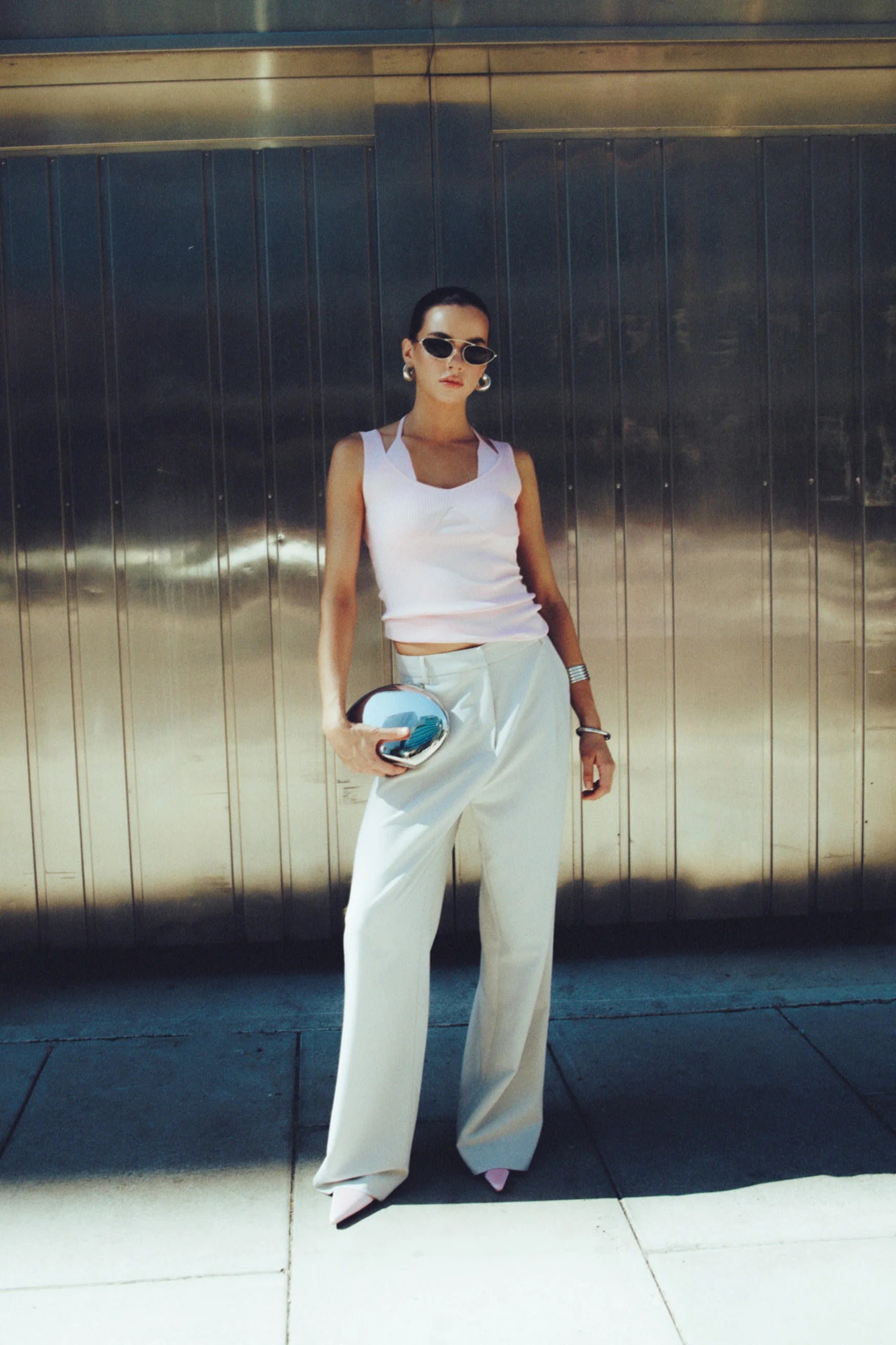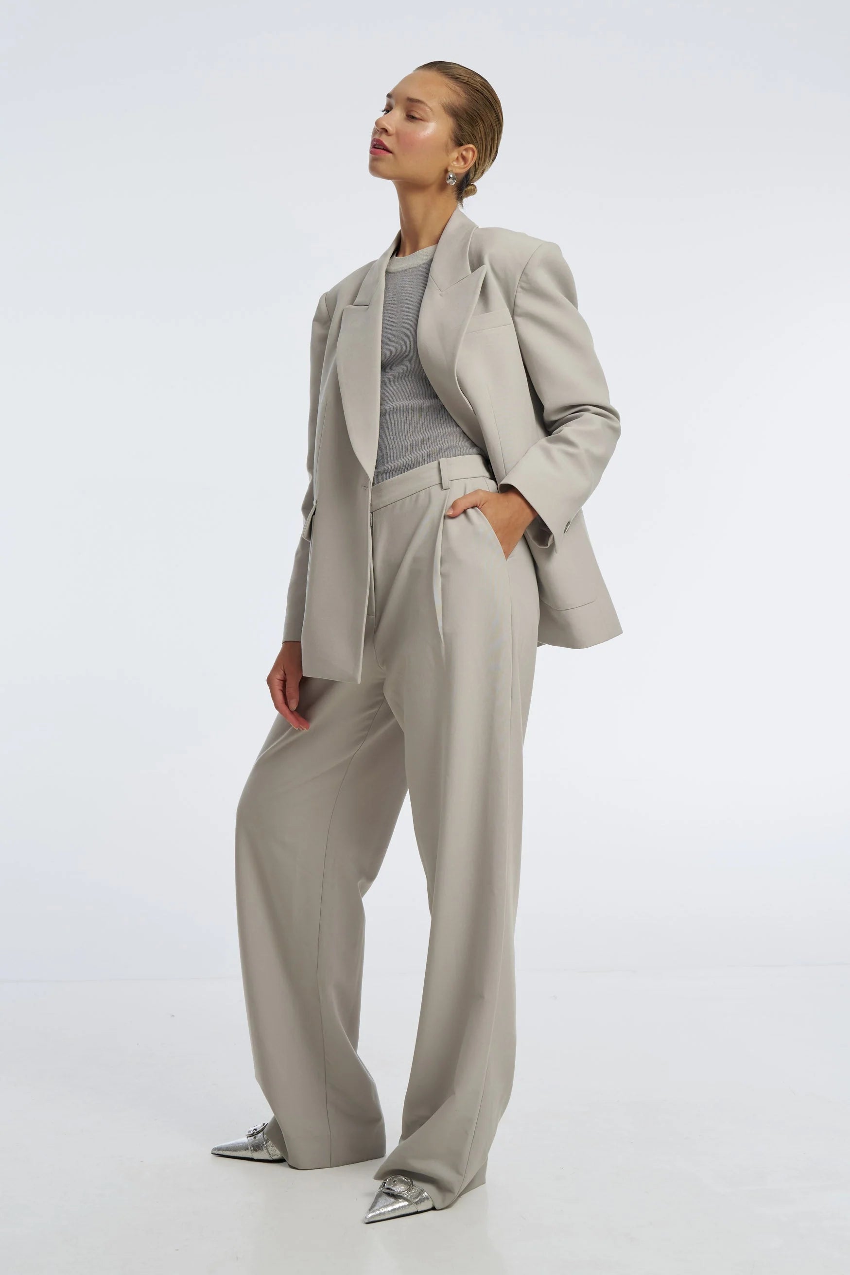 The Nadia Pant is a sophisticated must-have for your wardrobe. With a wide-leg silhouette, these tailored trousers in a soft dove hue offer versatility and timeless style. Perfect for taking you from desk to dinner, pair them with the matching Nadia Blazer for a modern power suit, or with the Nadia Vest for a chic transeasonal look.