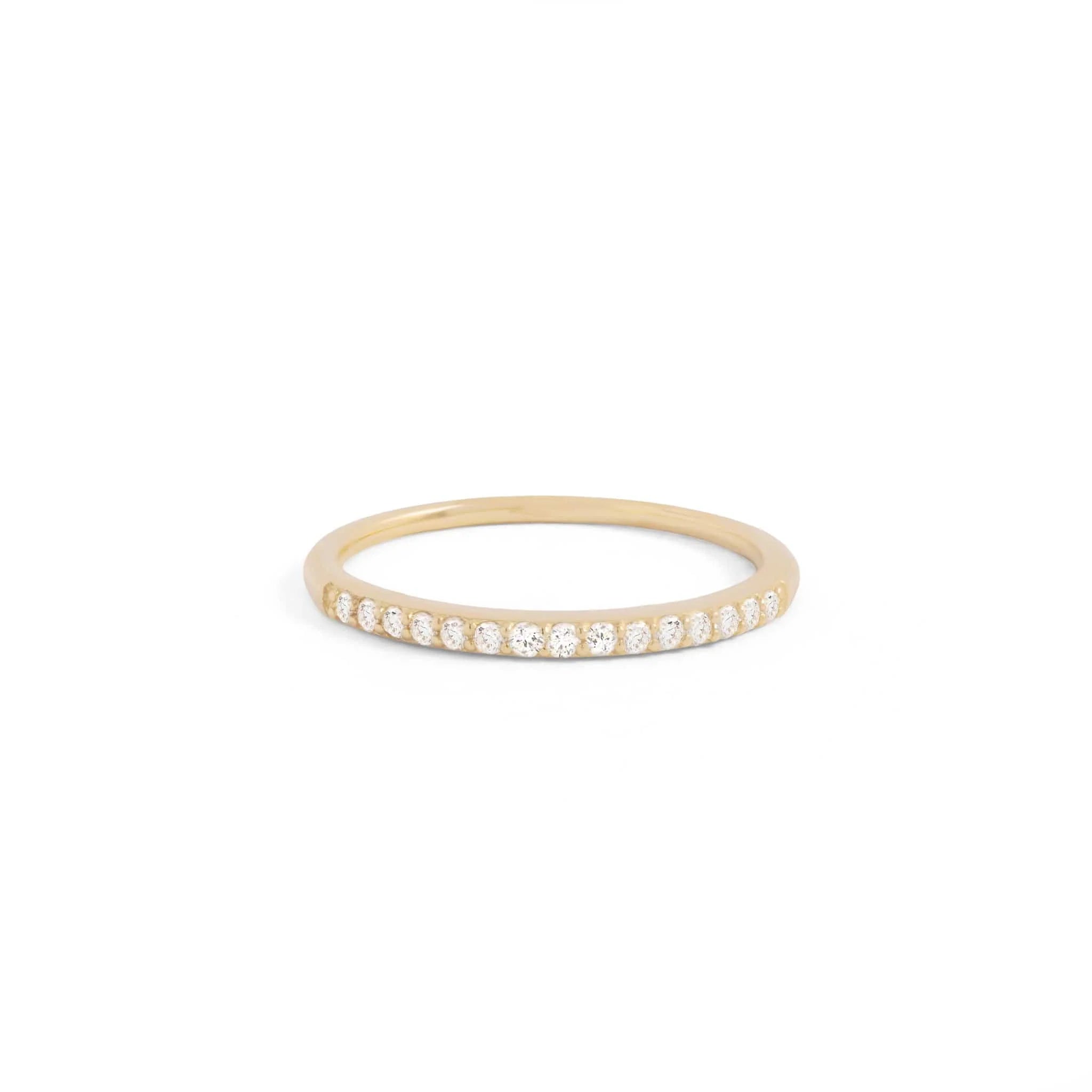 Taking its inspiration from the magical constellations of our celestial skies, our 14k Gold Diamond Halo Ring features a row of sparkling white Diamonds set on a fine Gold band.