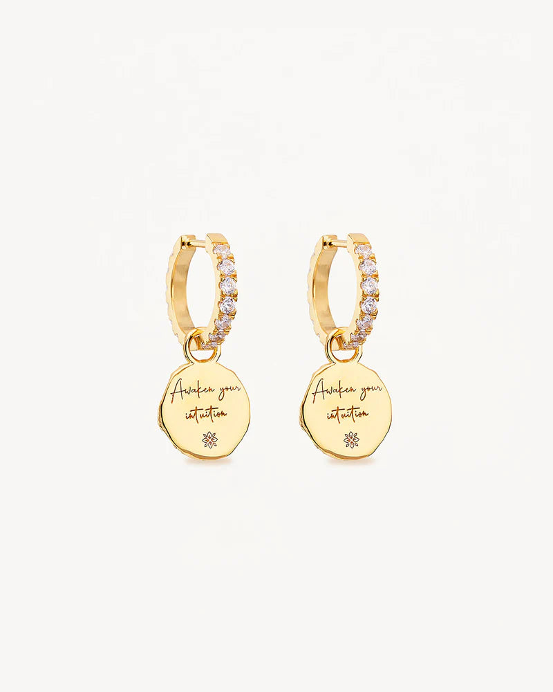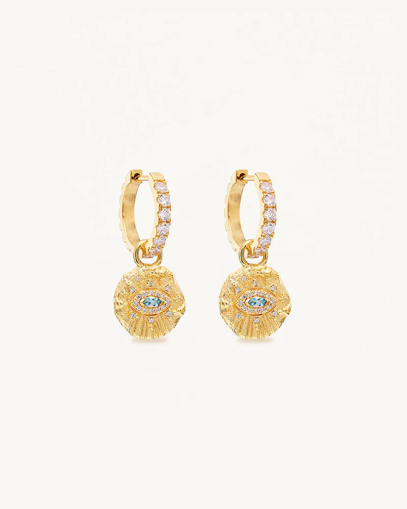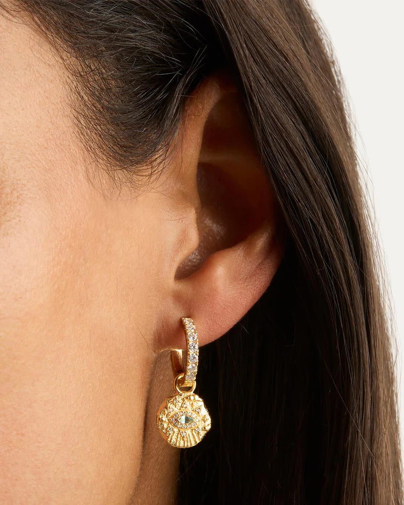 Connect to your higher self with our Awaken Hoops. A vibrant natural marquise swiss blue topaz is framed by a crystal encrusted Eye of Intuition. Layer these hoops and be inspired to dream big and see your future exactly the way you want it to be.
