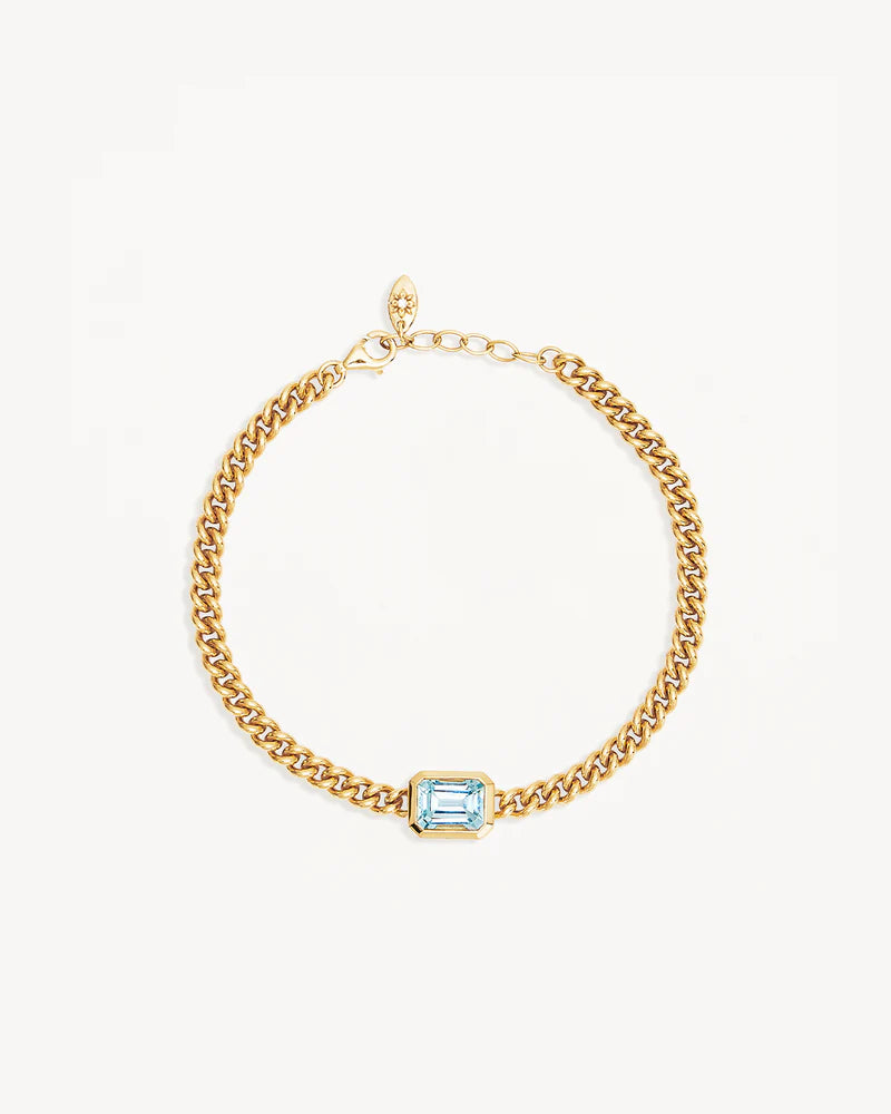 Find your centre in the calm with our 18k Gold Vermeil Calm Your Soul Topaz Curb Bracelet. Featuring an emerald-cut natural sky-blue topaz in a bezel setting, this chunky bracelet is the perfect piece for both everyday wear and occasion dressing.
