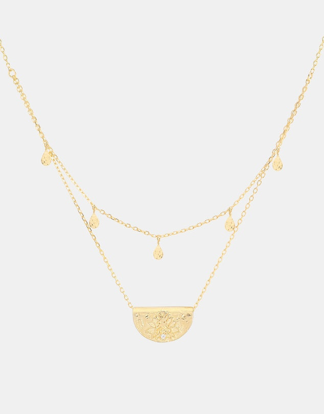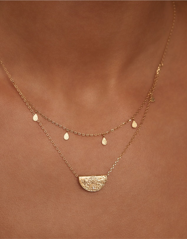 A reimagining of our signature symbol, allow our bejewelled Lotus Flower to guide you on a path of purity and infinite potential. Embrace new beginnings and spiritual enlightenment with the Blessed Lotus Necklace, a tribute to our soul's path to peace.