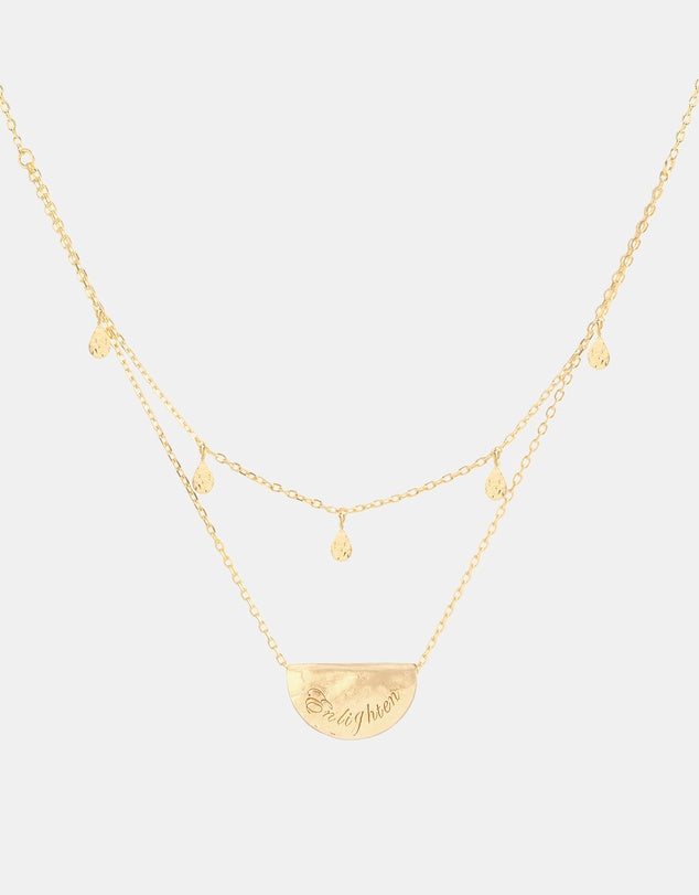Aligning you to your soul's purpose, our necklace is inscribed with the mantra, "Enlighten", on the back.