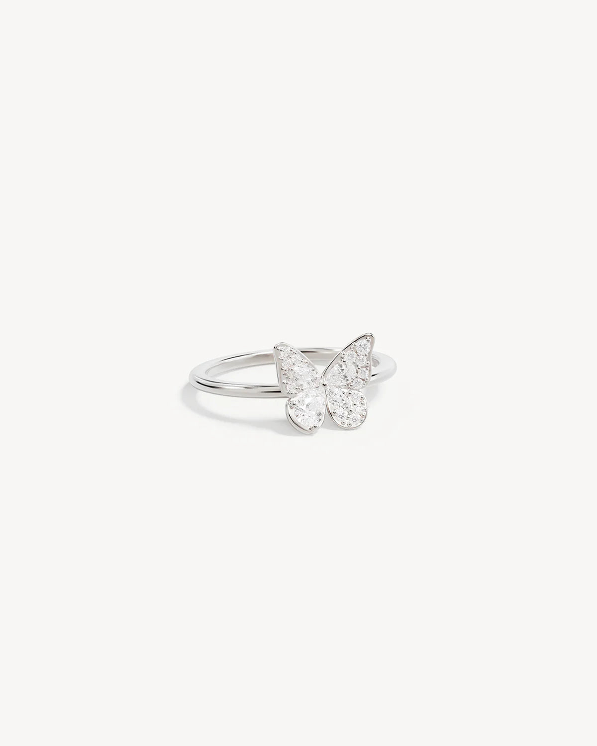 Delicate butterfly design set with round, marquise and pear cut cubic zirconias in a claw setting.