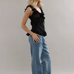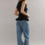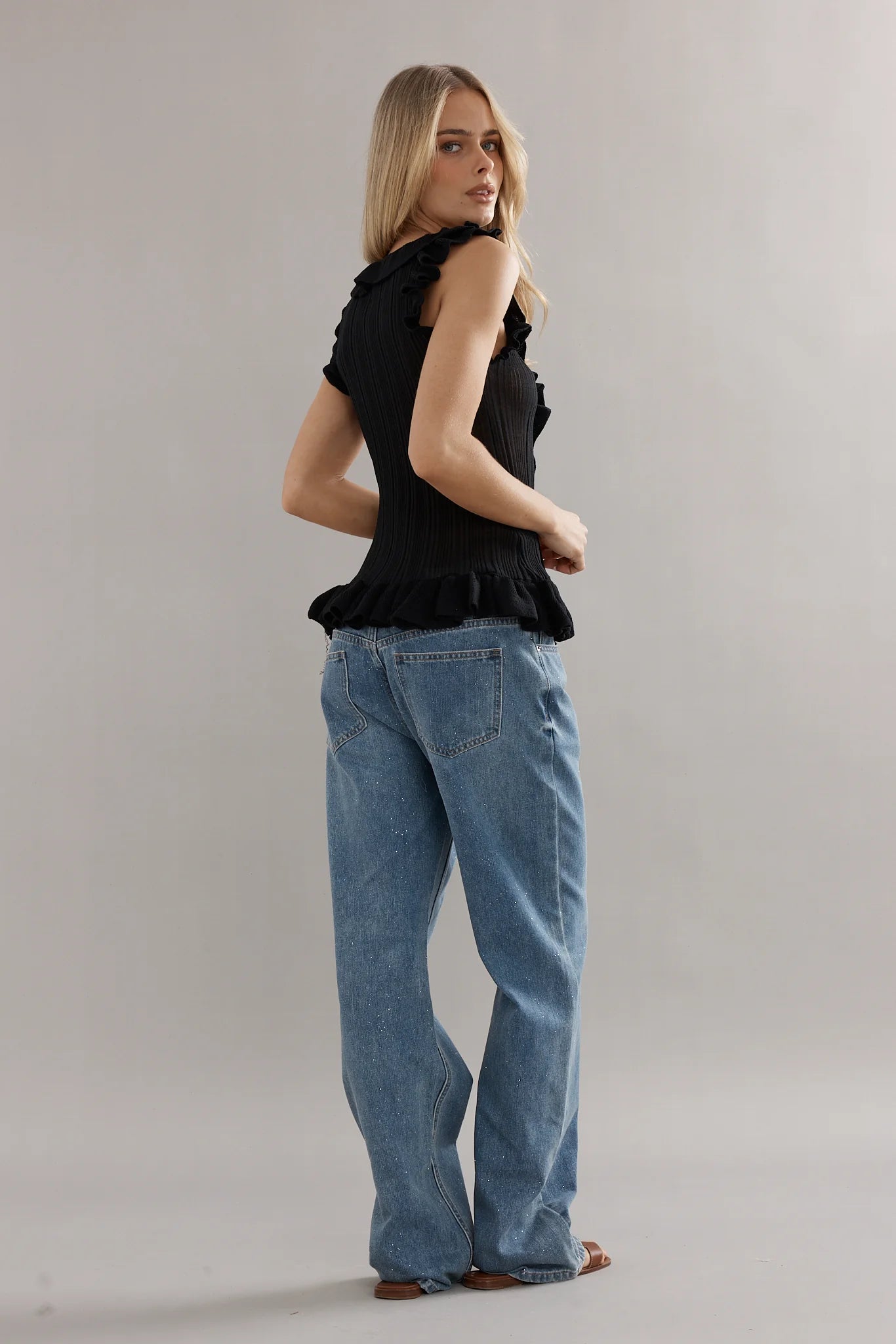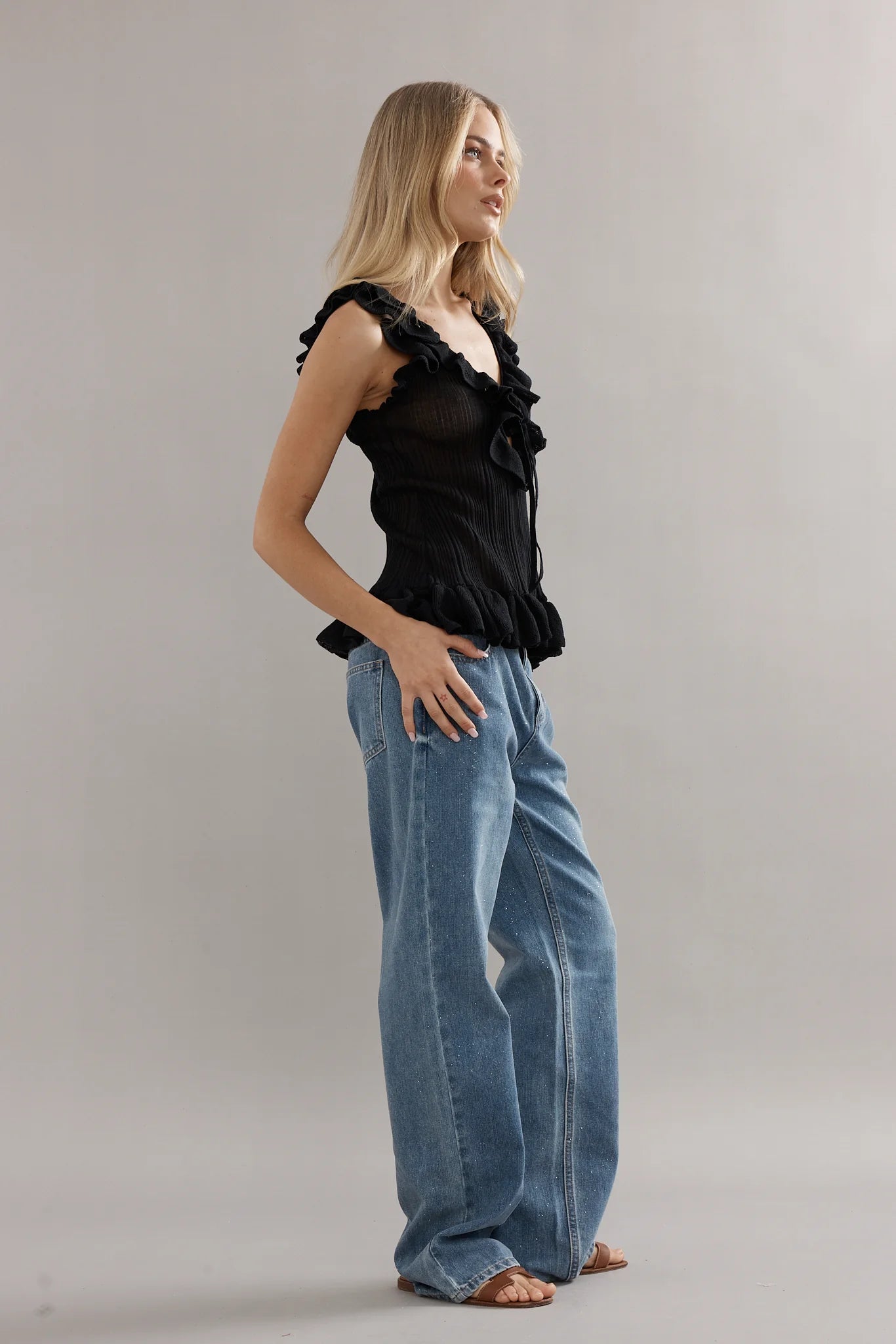 A knit tank, with a feminine twist. Designed in the same rib knit as The Angelica Dress, The Darwin Tank is finished with ruffled edges and a tie-front neckline. Available in blue, white, and black, she’s the versatile little number you’ll be reaching for again and again.