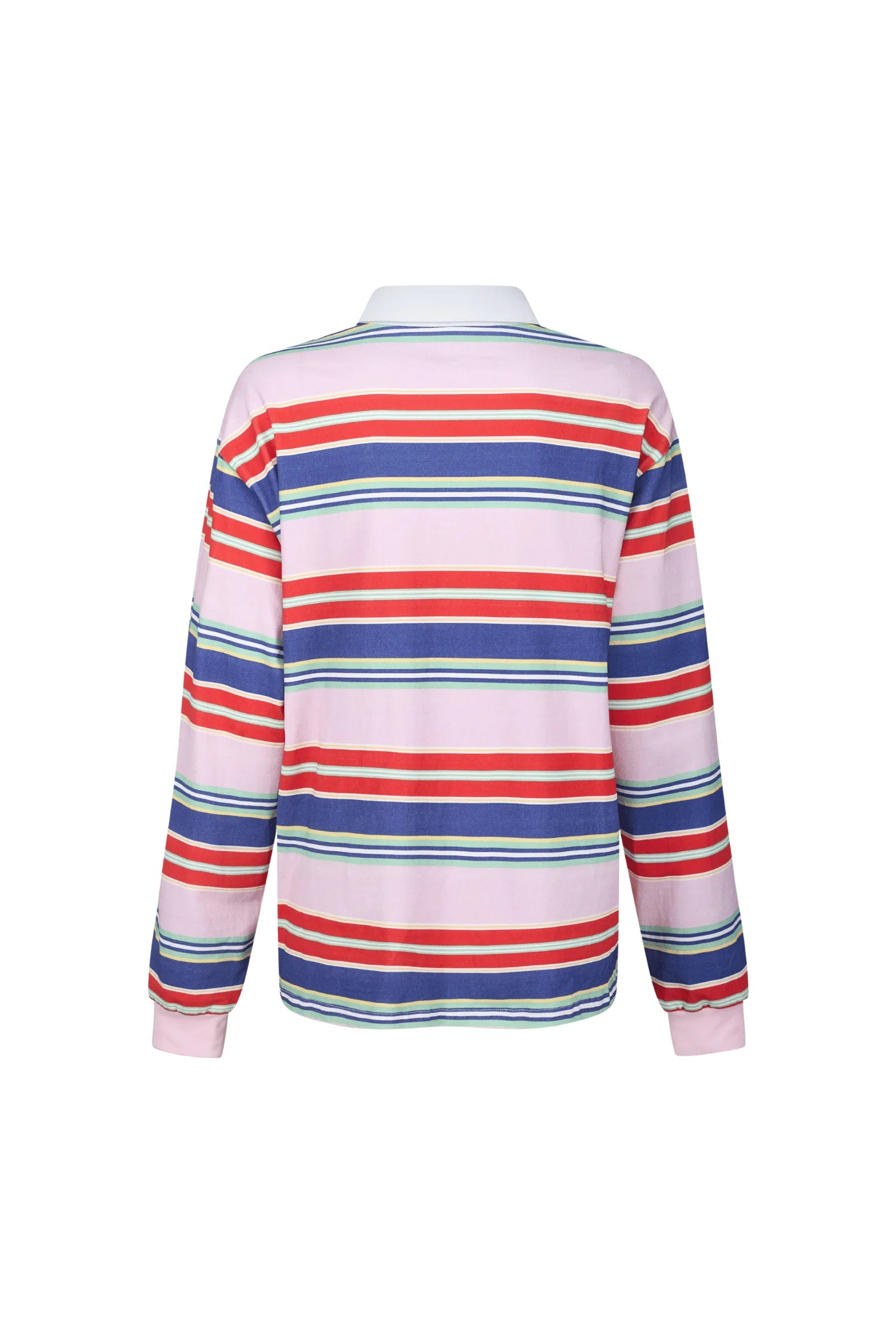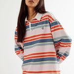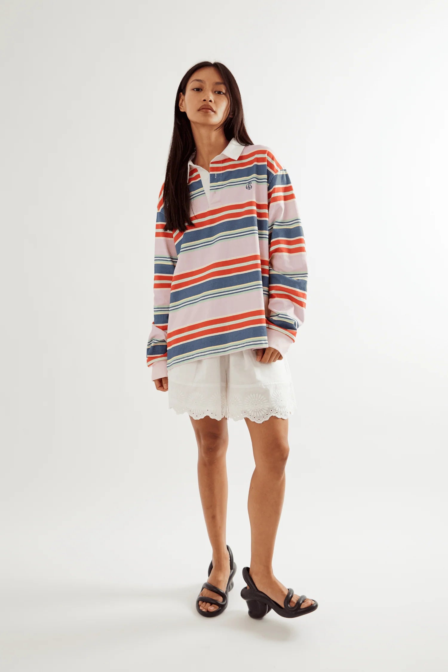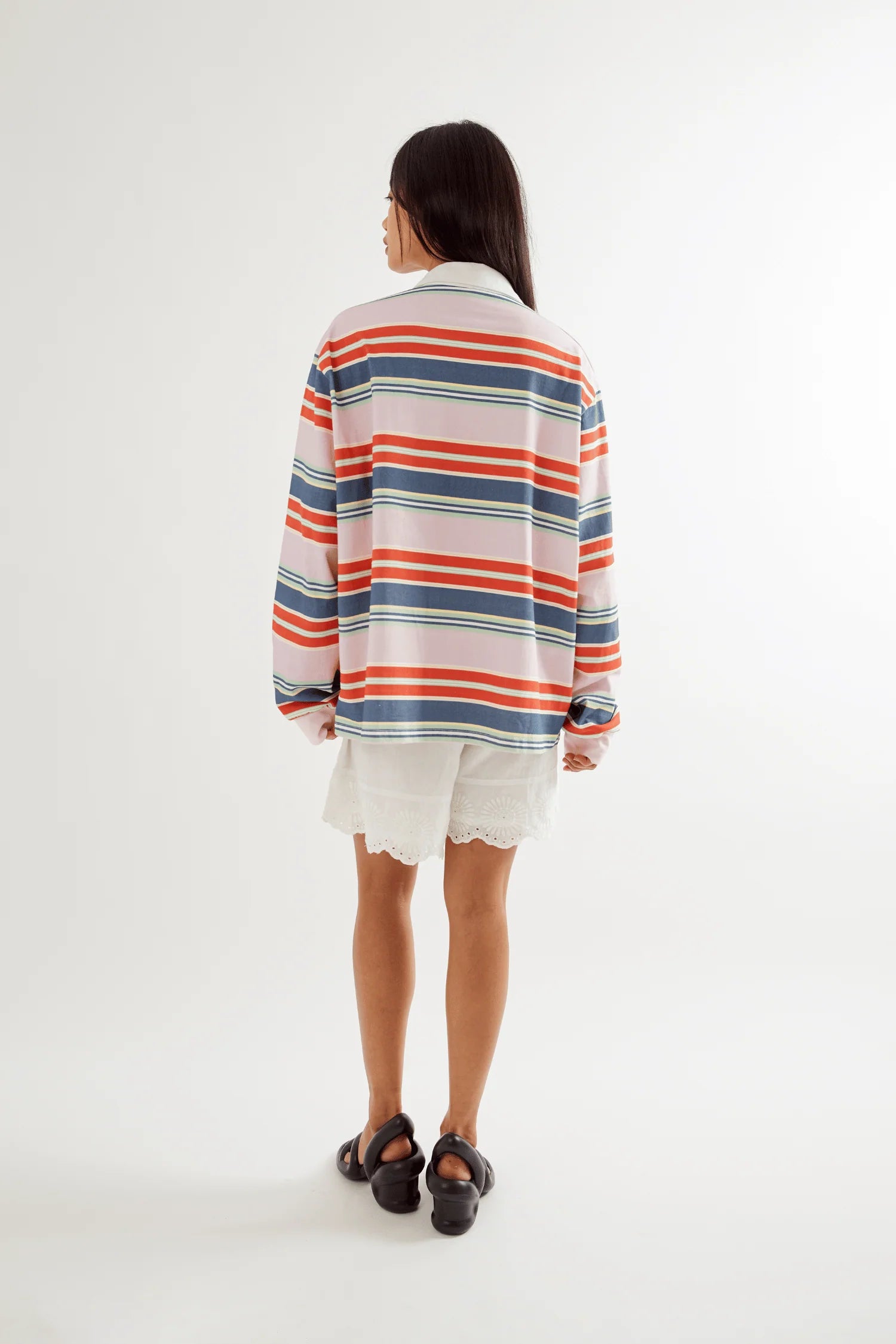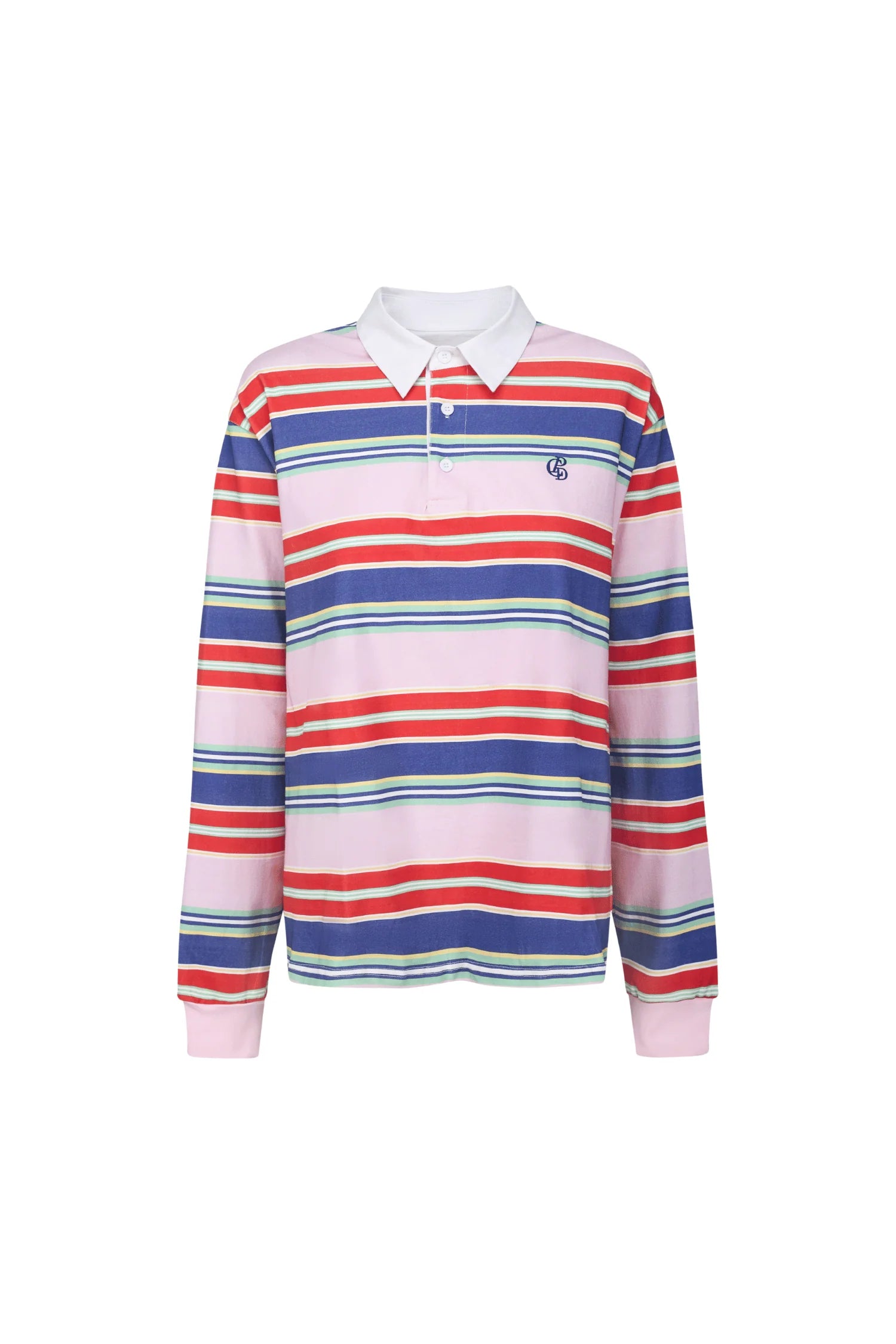 A classic Commonplace Essentials piece - relaxed polo with an open placket and custom retro multi-stripe. 100% Organic Cotton.