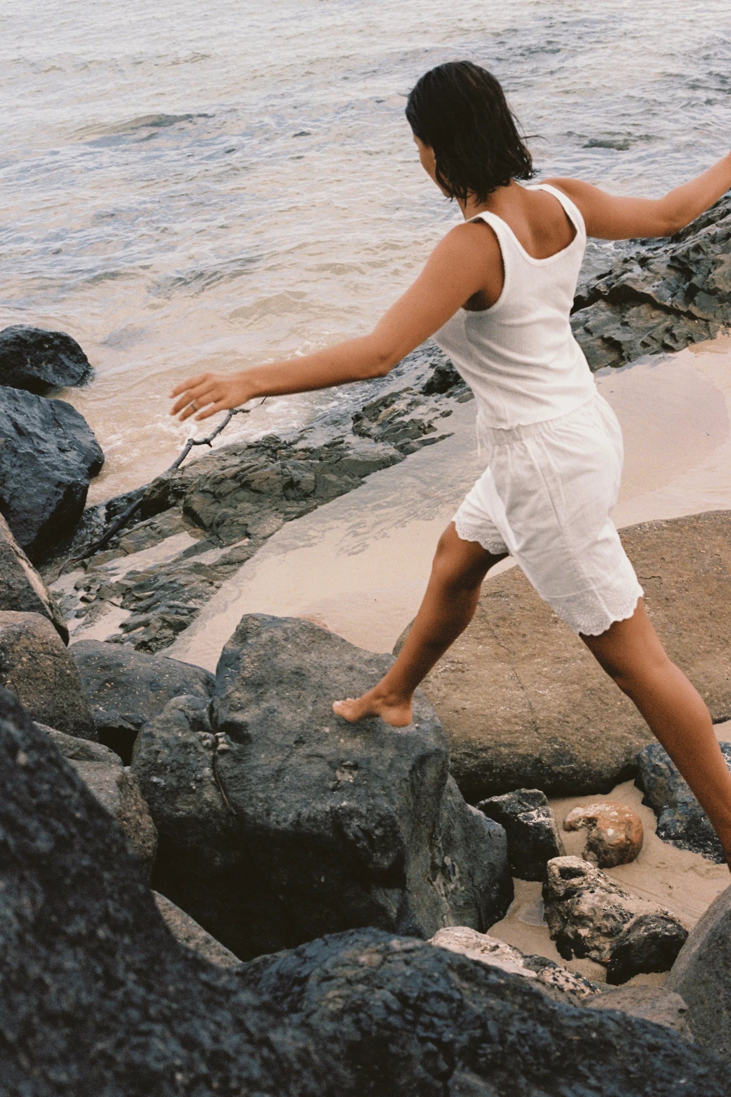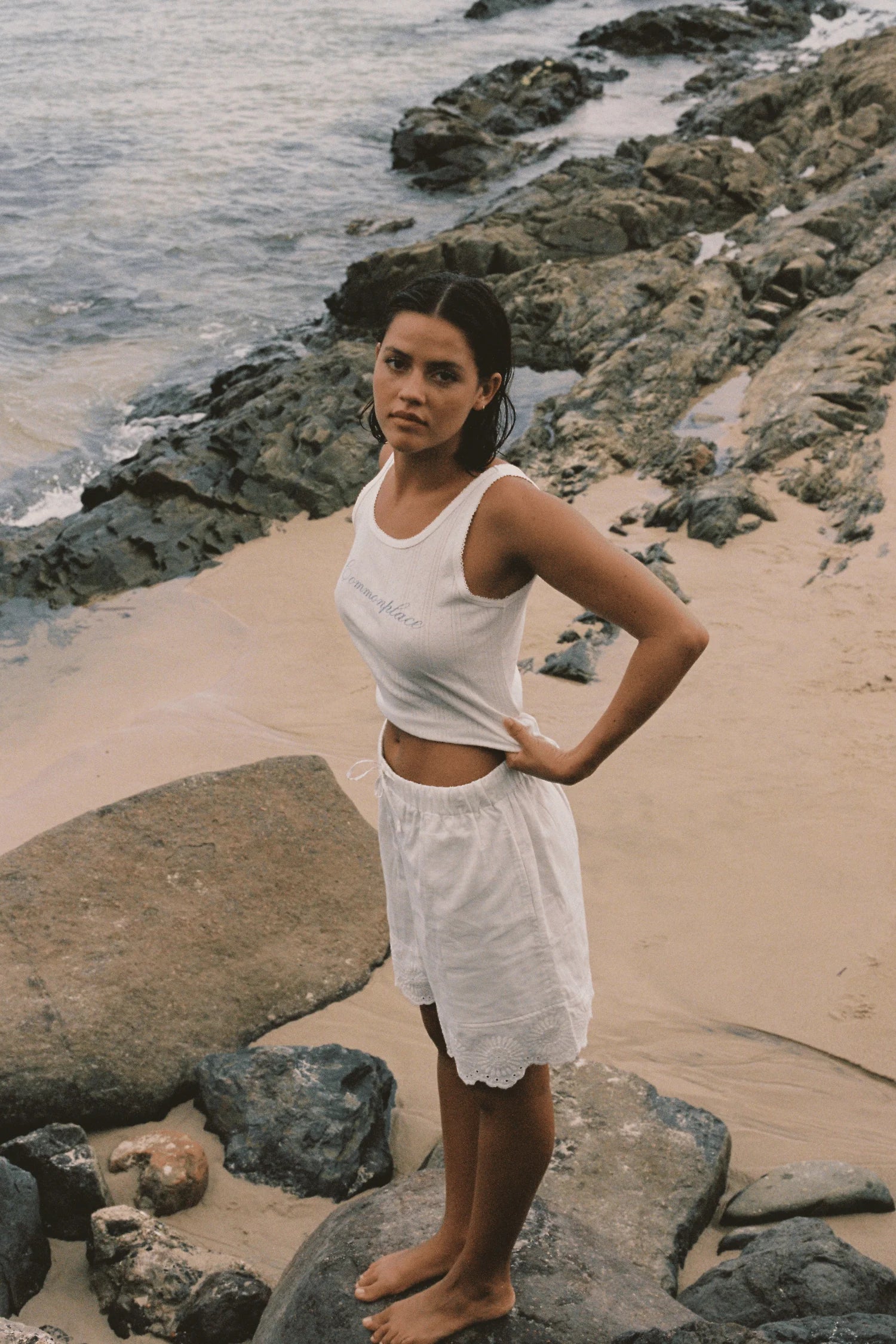 COMMONPLACE ESSENTIALS - Riviera Pointelle Tank - Cream