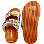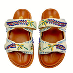 Hello Summer! Enjoy these comfy flower beaded strap fussbett sandals in the city or during a stroll at the beach. A unique piece of handcrafted art.