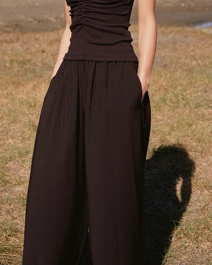 Our Pippa Pants are available in a slightly heavier weight to our cotton version. They are by far our most comfortable pant we've ever designed. Featuring an elasticised waist they are full throughout and have in-seam pockets. These pants are mid-rise sitting a fraction below the waist. Made from mid-weight twill, the perfect weight to wear during cool to warm temperatures.