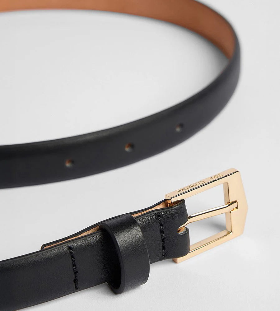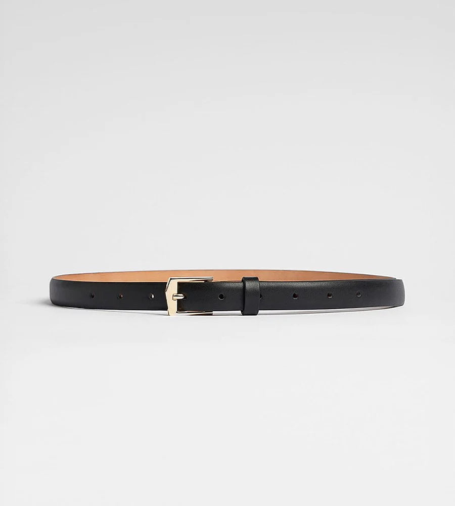 A simple and simply elegant accessory, the Ida Belt in black is a timeless outfit staple. Whether paired with denim or our classic suiting, the Ida Belt pieces outfits together effortlessly. Made with genuine leather with a matte finish and angular gold buckle, this belt has a 2cm width to keep outfits looking sleek, minimal and sophisticated.