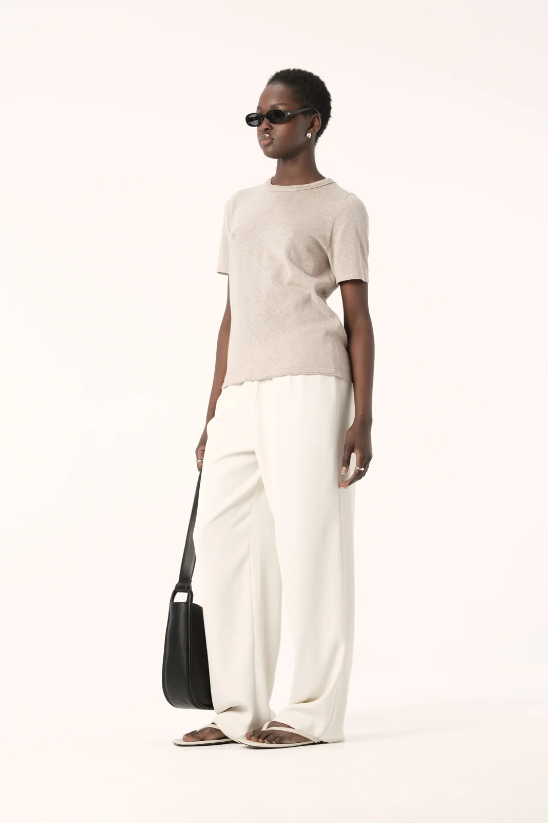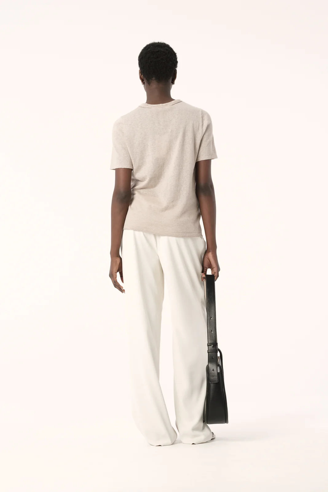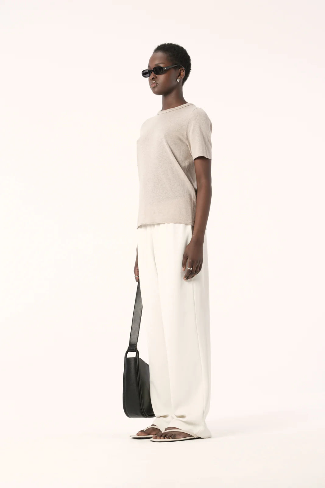 Elevating basics beyond the ordinary, the Lewie Top will be a welcome addition to your transitional wardrobe. Made of a blended knit of cotton, linen, and CiCLO recycled polyester, the Lewie Top feels luxe and keeps you warm in the chill without compromising breathability. Cut in a classic t-shirt style, the Lewie Top has a relaxed, slightly oversized fit with crew neckline, short sleeve, and stretch throughout. Style with essential denim or tailored pieces for a look that can go anywhere.