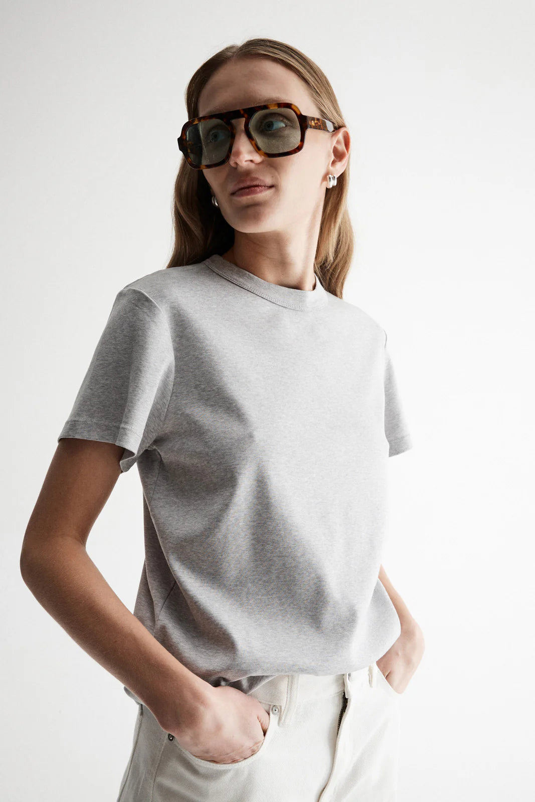 Part of our premium basics range, the Mia Tee in Grey Marle is a true wardrobe staple. Made of 100% soft organic cotton, this t-shirt is a sleek and comfortable option for easy casual outfitting in any season. With the light neutral colour, a classic short sleeve design, crew neckline, and a slightly oversized, boxy fit, the Mia Tee can be styled with all skirts, jeans, and suiting options for work to weekend.