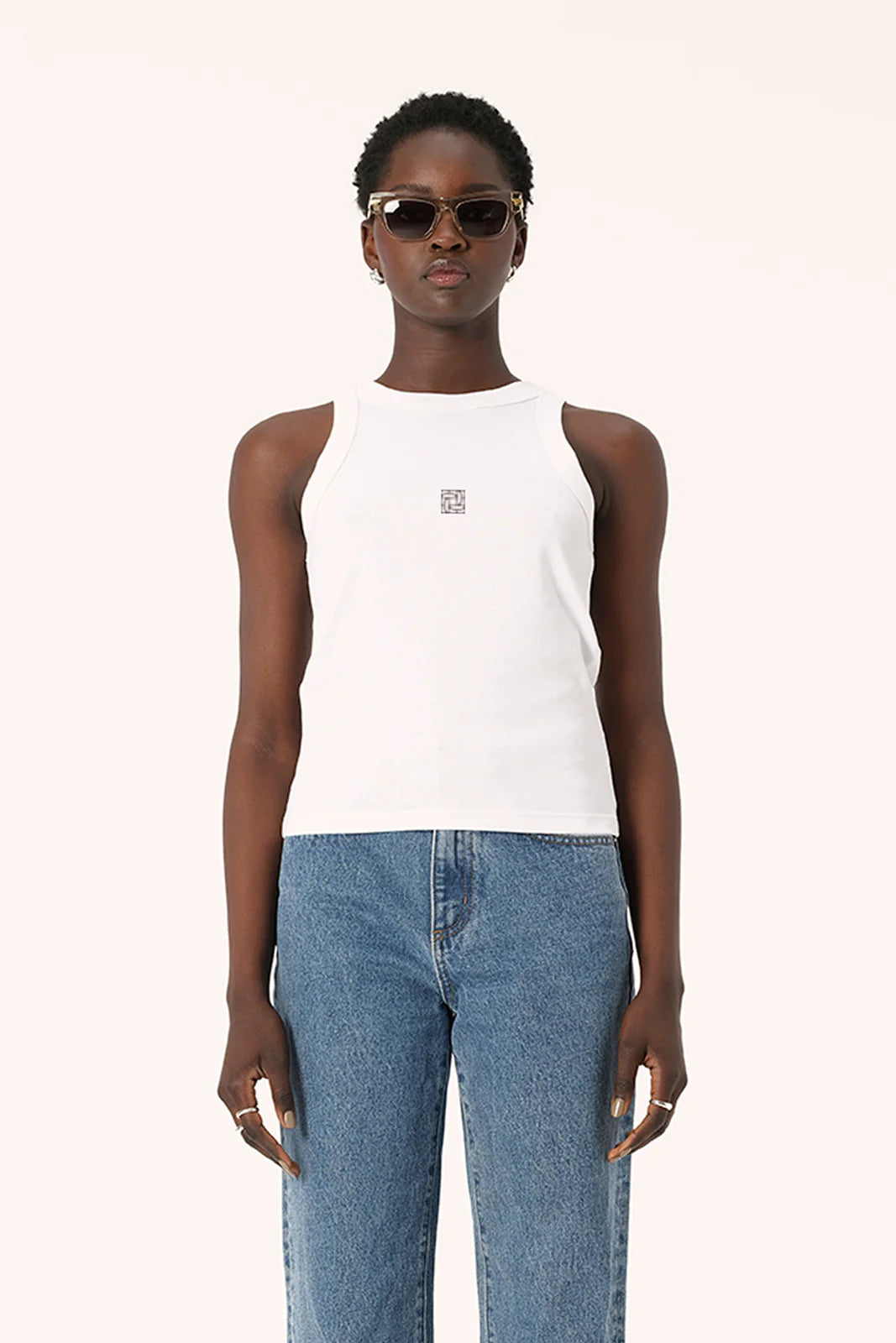 A beloved basic, elevated; the Zoe Monogram Tank is our classic Zoe Tank style reinvented. Made from 100% organic cotton with a superfine ribbed fabrication, the Zoe Monogram Tank has a crew neckline with bound collar and arm holes and a slightly relaxed slim fit silhouette with stretch throughout to enhance comfort. This singlet tank is finished with the Elka Collective monogram embroidered at the centre chest. Wear with our denim and tailoring essentials for effortless day to night outfitting.