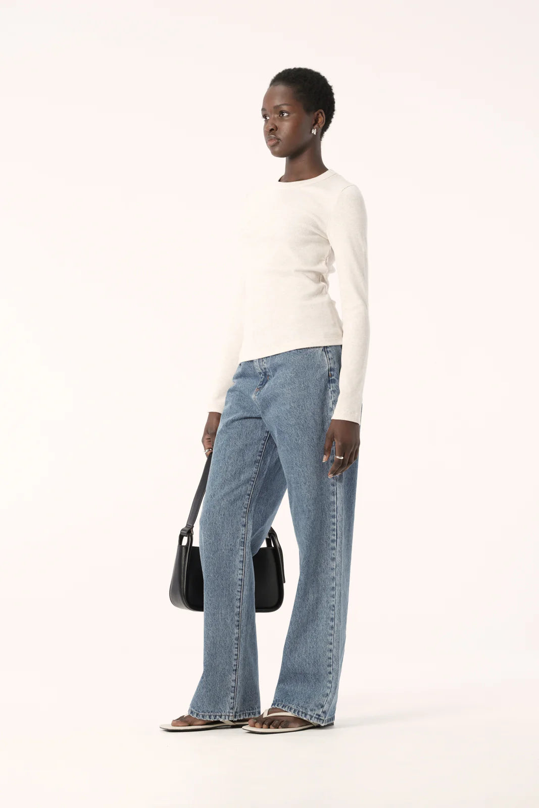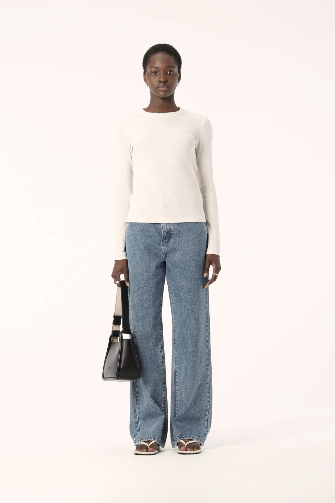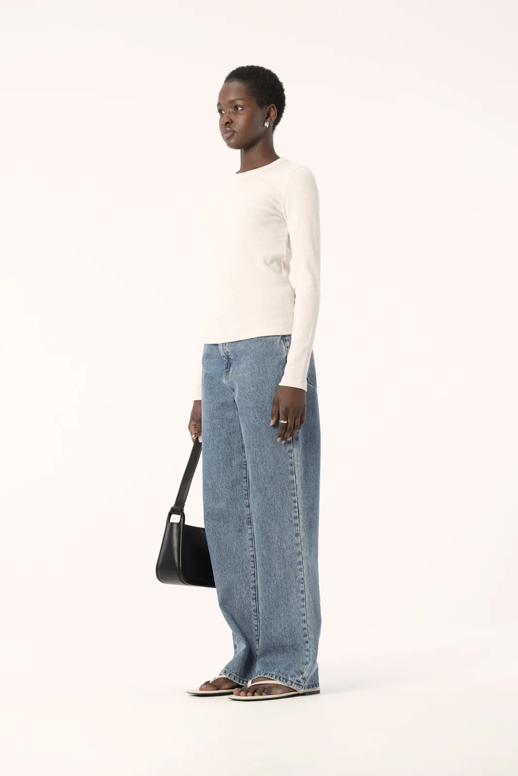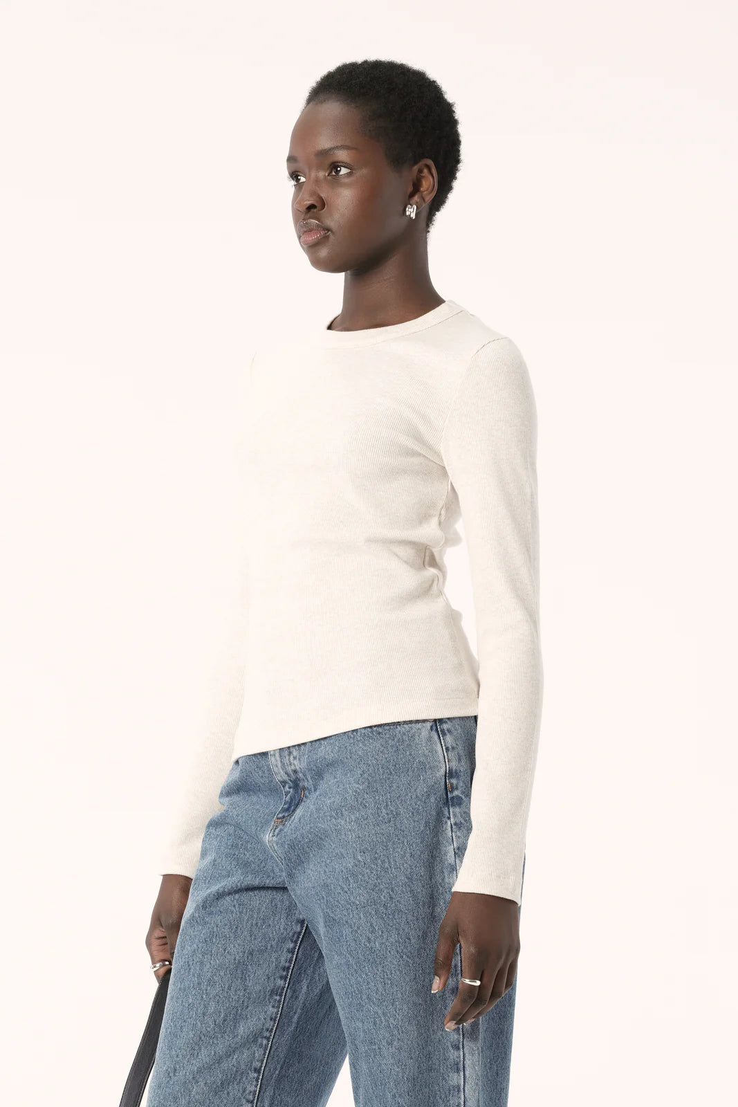 The ultimate everyday wardrobe staple, the Nola Long Sleeve Top in White Marle is part of the E.C Premium Basic range made from a ribbed cotton fabric that's been chosen for it's sleek look and supreme comfort. Perfect for layering under knitwear or pairing with classic denim, this top has a crew neckline, long sleeve and a fitted silhouette.