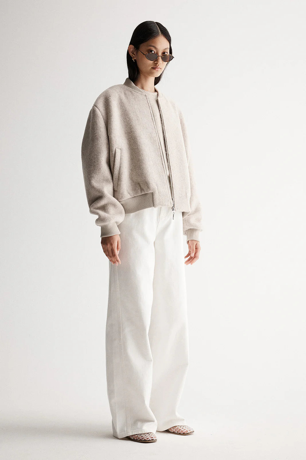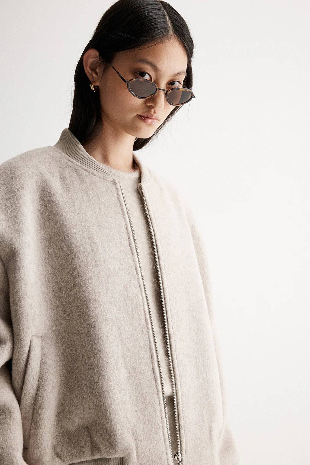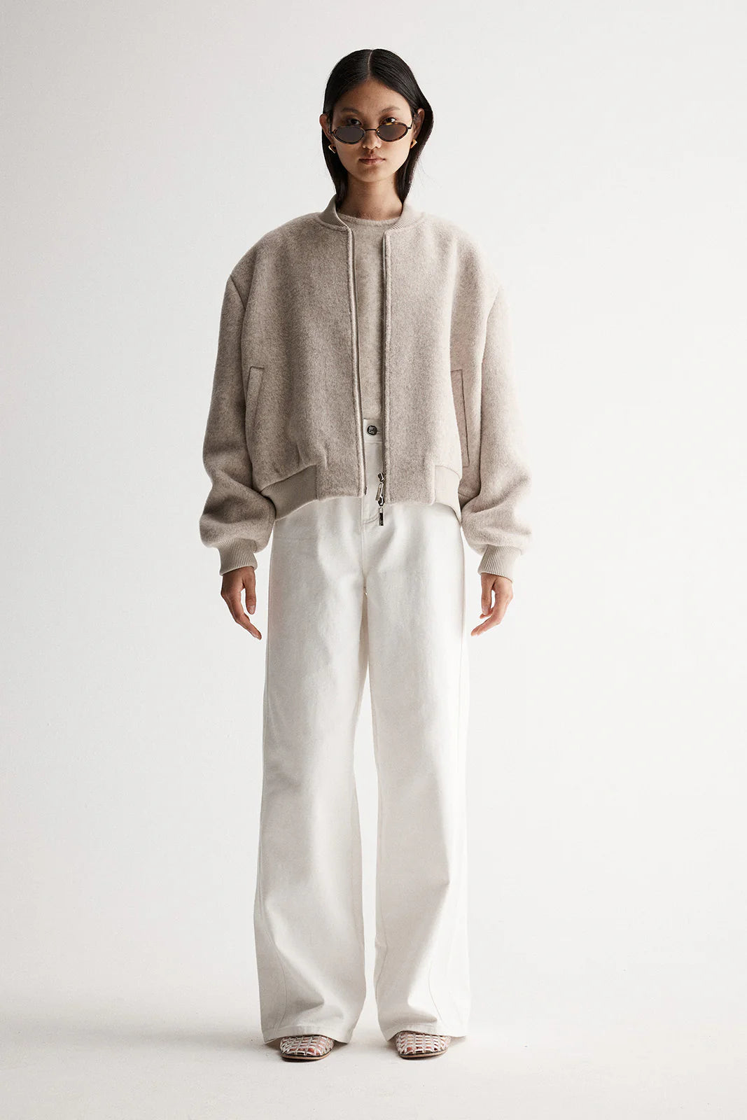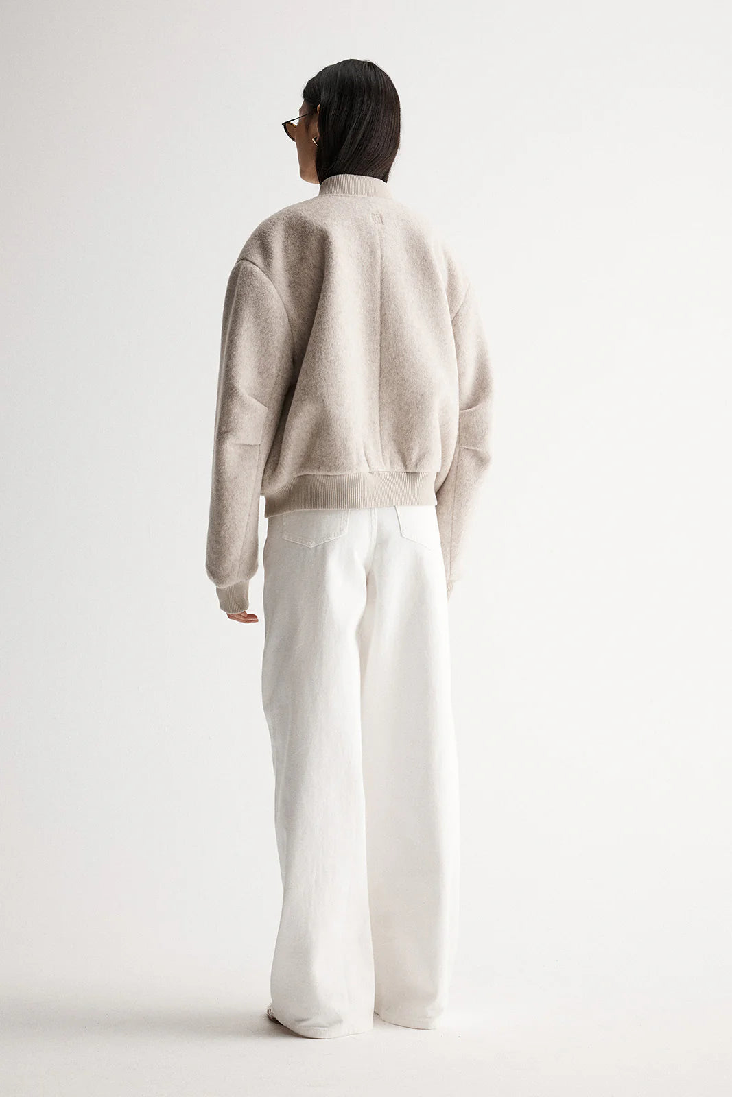 Reinventing casual pieces through luxurious fabrics and refined textures, the Nonnie Jacket offers a contemporary and elevated approach to weekend outfitting. Made of a wool blend fabric, this bomber jacket is cut to a cropped length with an oversized silhouette, ribbed contrast detailing at the neckline, cuffs and hem, plus a double-ended zip through front. Effortlessly repurposing masculine design details, this jacket is a low key option for laid back styling.