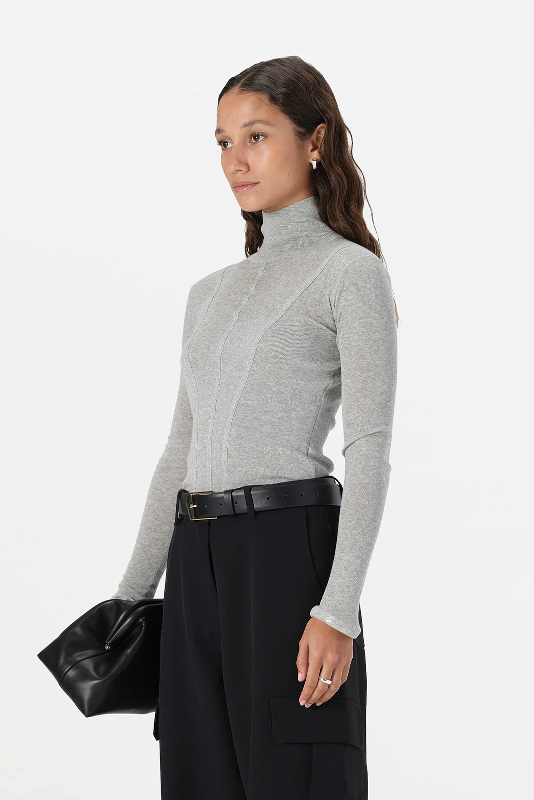 A simple design elevated with subtle detailing, the Odette Knit Top is an essential for understated looks this season. Made of a fine cotton blend knit fabric, the Odette Top is cut to a slim fit silhouette with full length sleeves and a high mock neckline. Accentuated with line detailing reminiscent of corset boning, Odette draws the eye down and the figure inward. Style with tailored essentials for work to weekend wear.