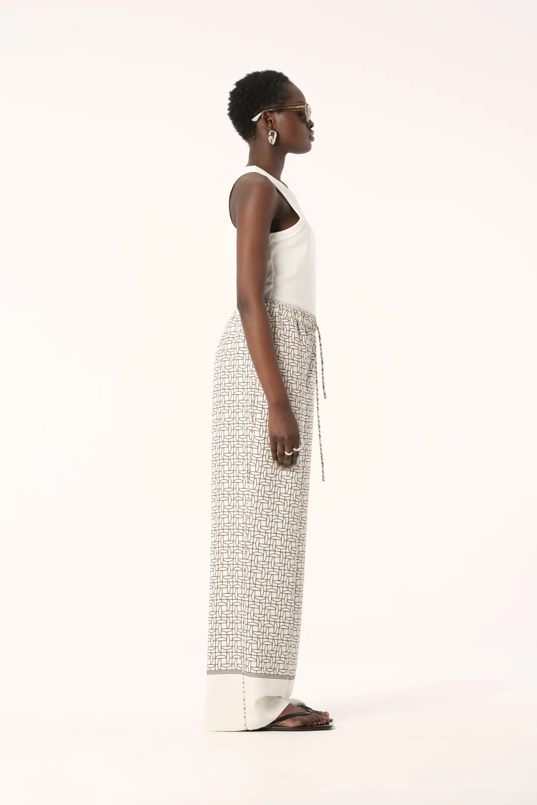 Embrace new ways to wear prints in the season ahead with the Rumi Pant. Made from a light polyester fabric, the Rumi Pant is cut to a relaxed and comfortable silhouette with a mid rise, drawstring waist, and full length wide leg. The Rumi Pant showcases our exclusive Elka Collective monogram print, as previously seen on our silk scarves and Santoria capsule, in an all-new neutral palette. Style with our Monogram Nola Tank or relaxed tees for a stylish off-duty look.