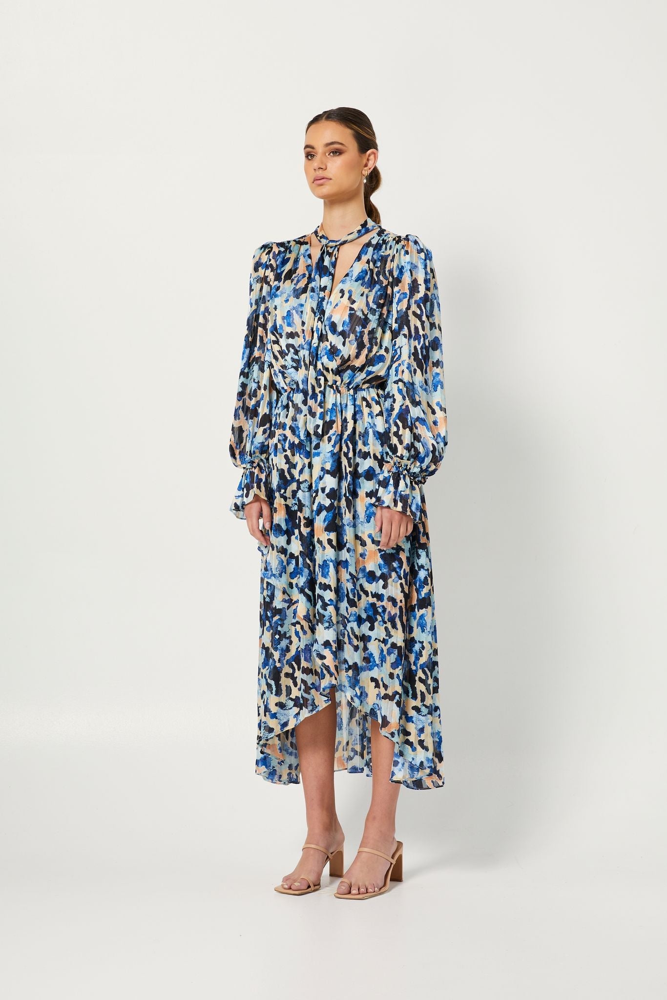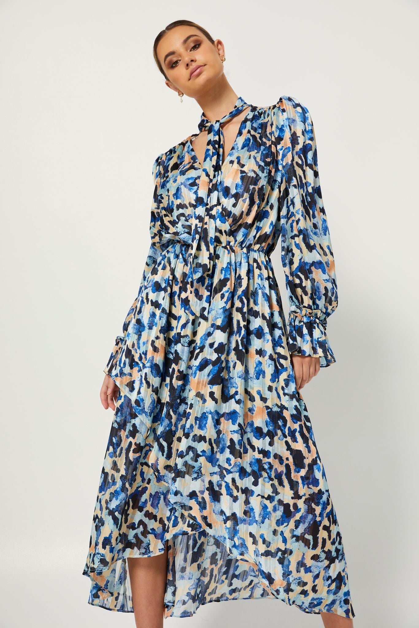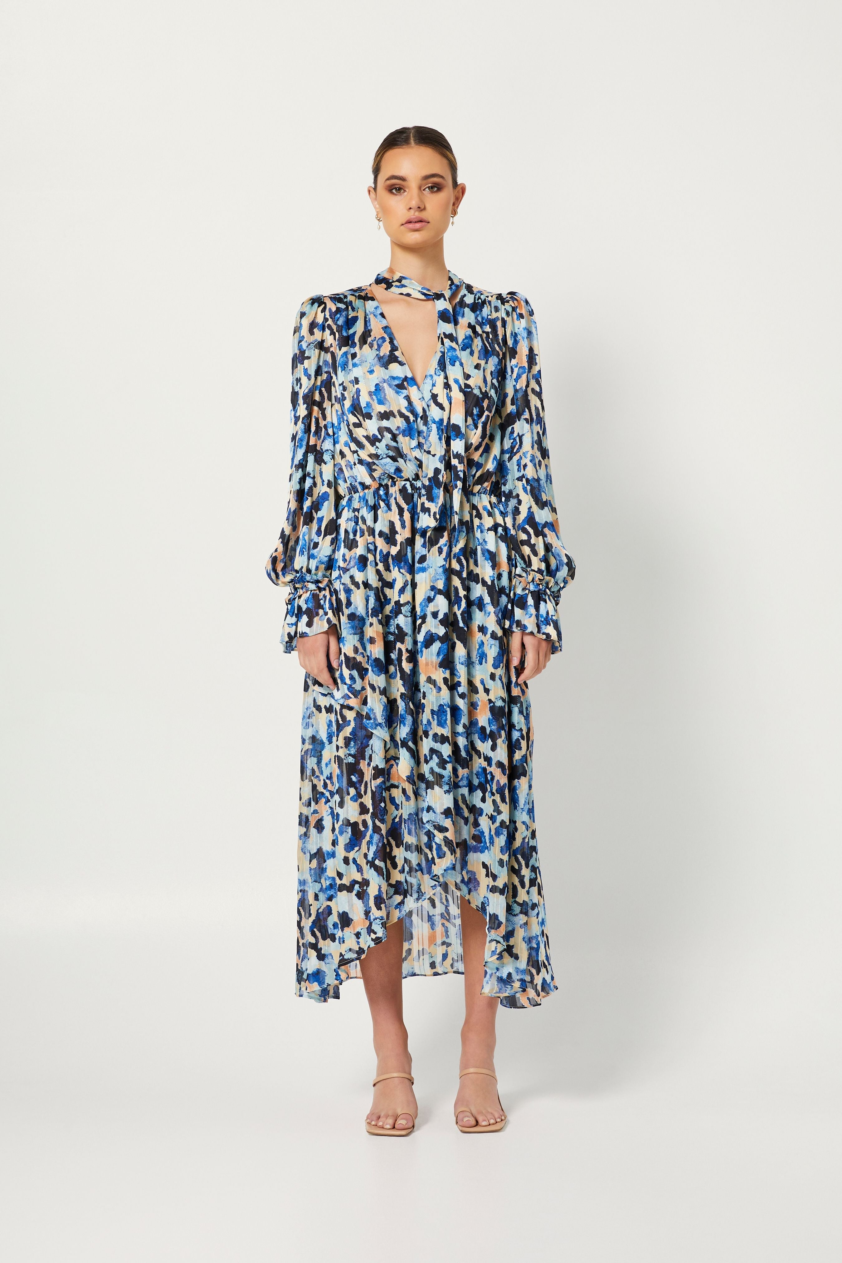 Elevate your ensemble in the Lucid Dress by ELLIATT. Midi in length, this abstract animal printed dress features full length sleeves, neck-tie and elasticated waistline in a georgette fabrication.