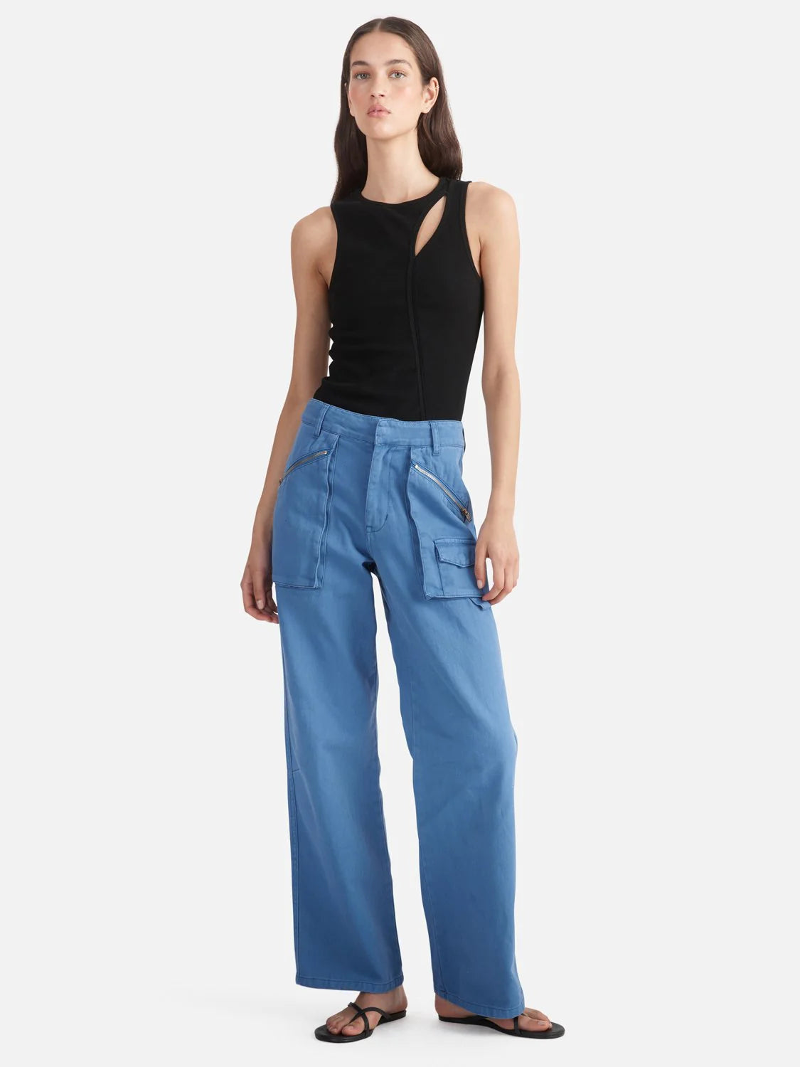 The Ena Pelly Bronte Cut Out Rib Tank will quickly become a foundational piece in your transeasonal wardrobe. Featuring ribbed detailing, an asymmetrical cut out the front and a keyhole cut out to the back, the tank has exposed seam detailing throughout to add a contemporary twist to a classic tank. The Bronte Cut Out Rib Tank will provide endless outfitting options this season.