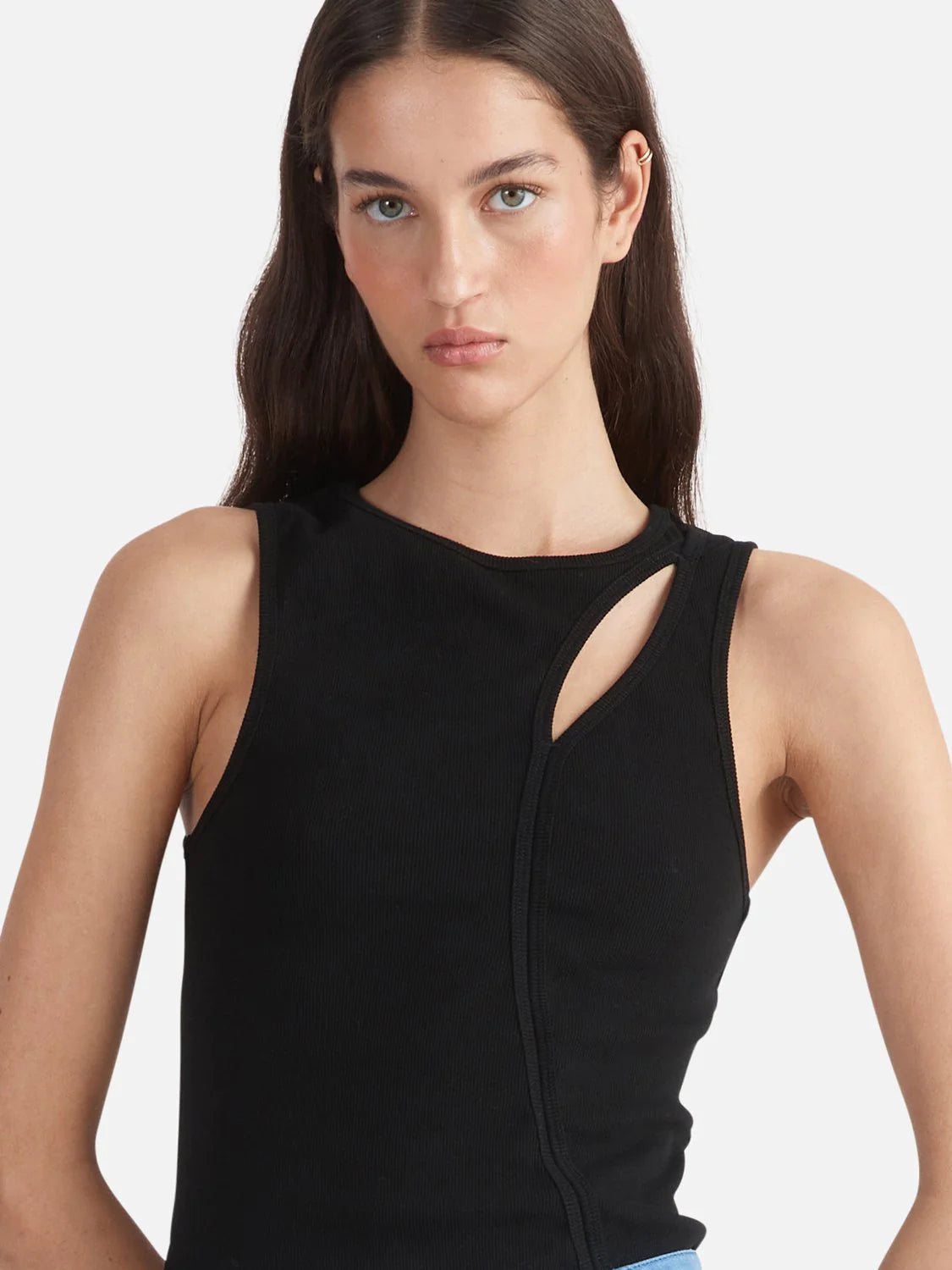 ENA PELLY - Bronte Cut Out Rib Tank - Black