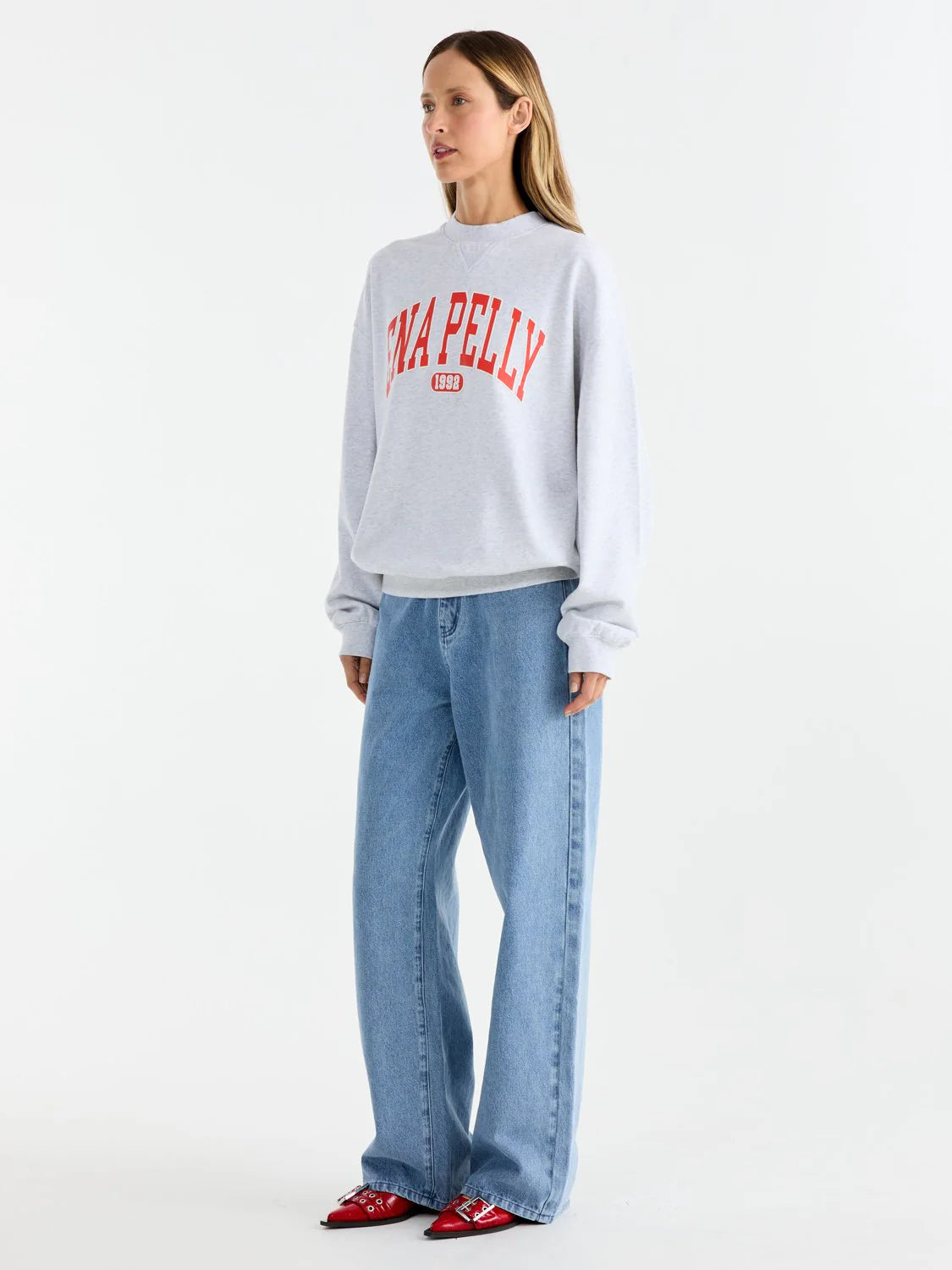 ENA PELLY - Collegiate Sweatshirt - White Marle / Red