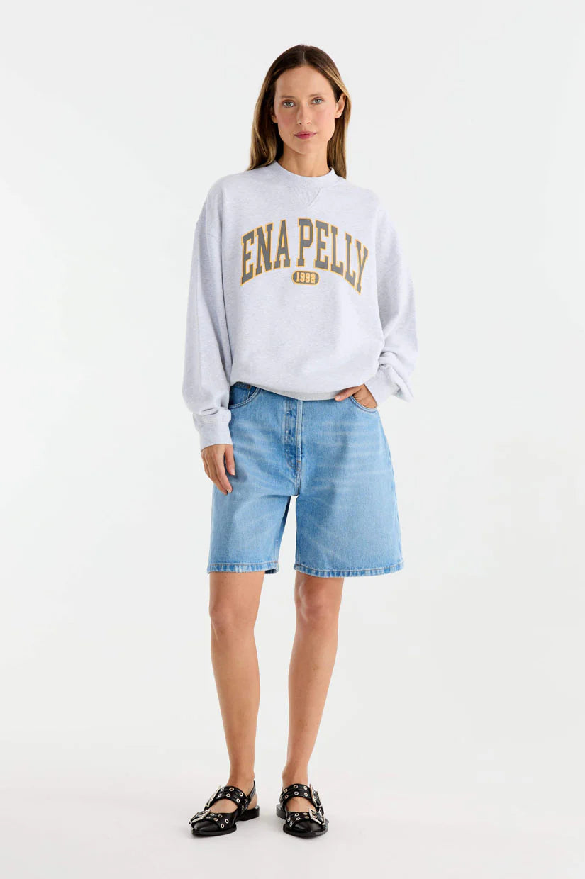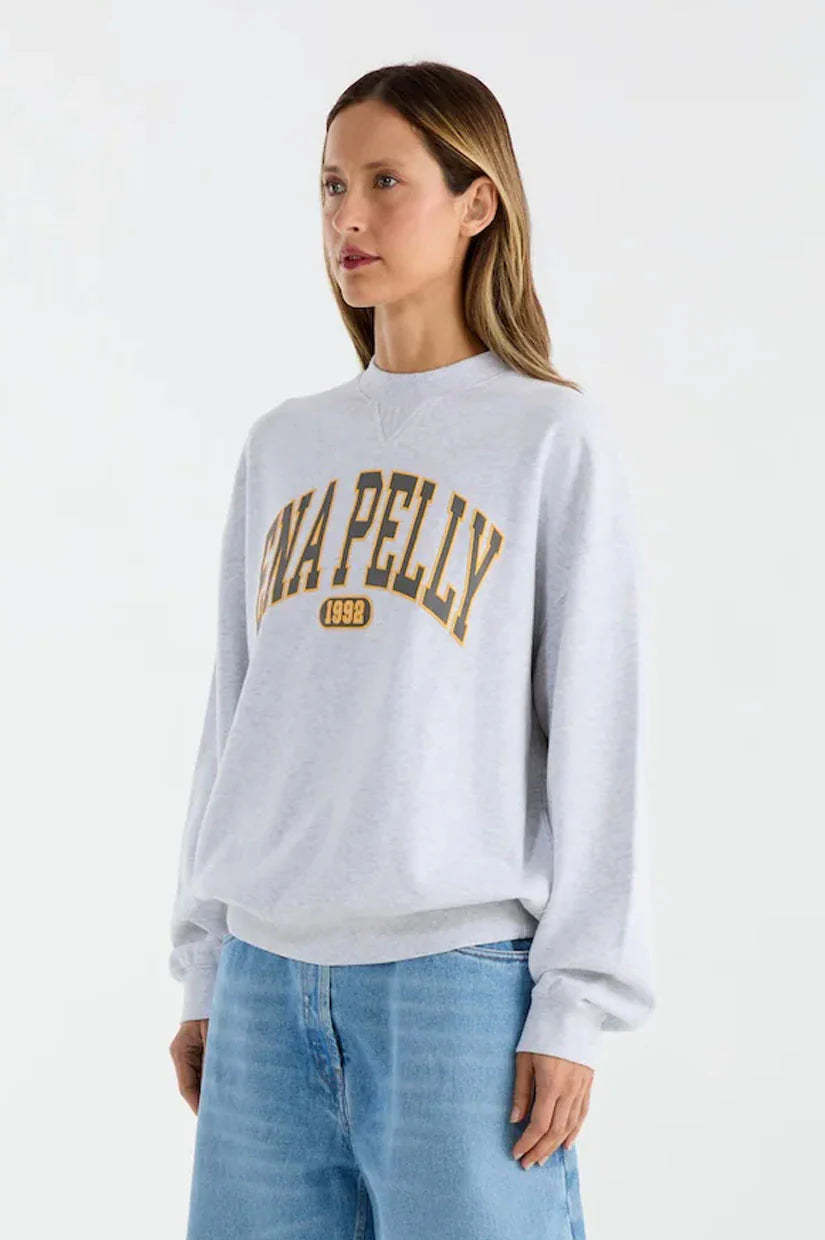 The Collegiate Sweatshirt in White Marle is crafted from soft cotton terry for an oversized fit. Featuring a crew neck, ribbed cuffs, and exclusive in-house graphics, it offers ultimate comfort and style. Pair it with joggers for a cozy, relaxed look.