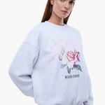 Designed exclusively in-house, the Rose Sweatshirt combines cosy warmth with artistic expression. The mid-weight fleece offers just the right amount of comfort without the bulk, while the semi-polished floral print adds a feminine touch to the relaxed silhouette. Drop shoulders and ribbed details complete the look with effortless style.